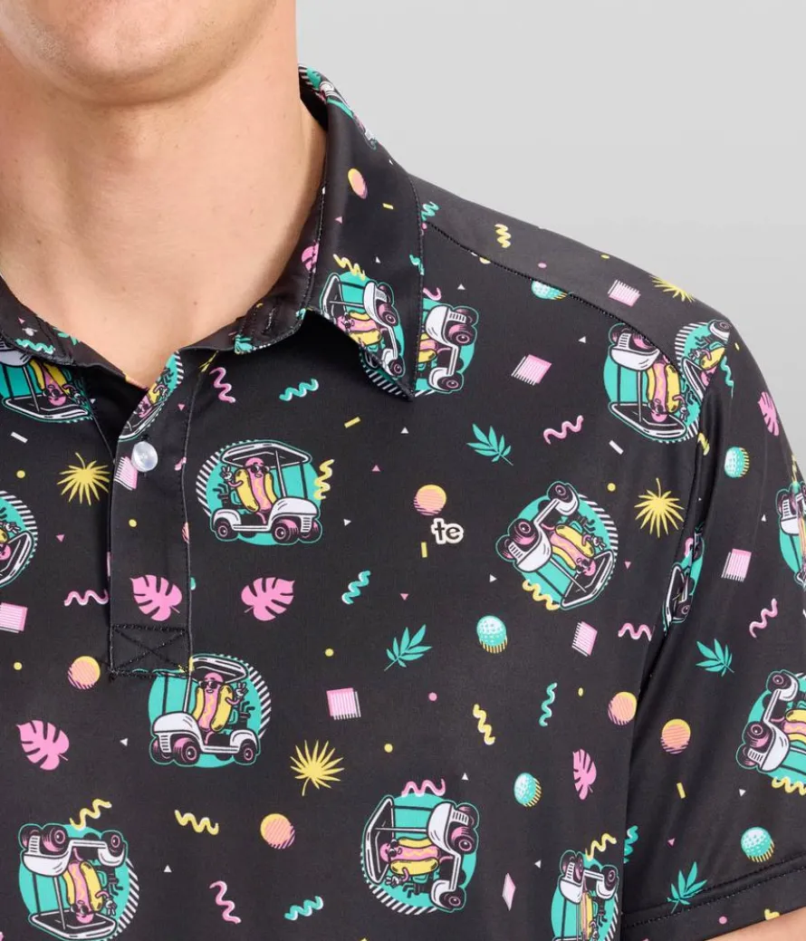 Some golf carts were born to cruise in style—just like you. The Men’s Cart Dog Golf Polo is all about embracing the laid-back, ride-along vibes of a perfect day on the course. Made with ultra-breathable, moisture-wicking fabric, this polo keeps you feeling cool whether you’re driving down the fairway or just rolling along for the ride. With a playful design and a flexible fit, this polo is built for comfort, movement, and a little extra personality on the green.