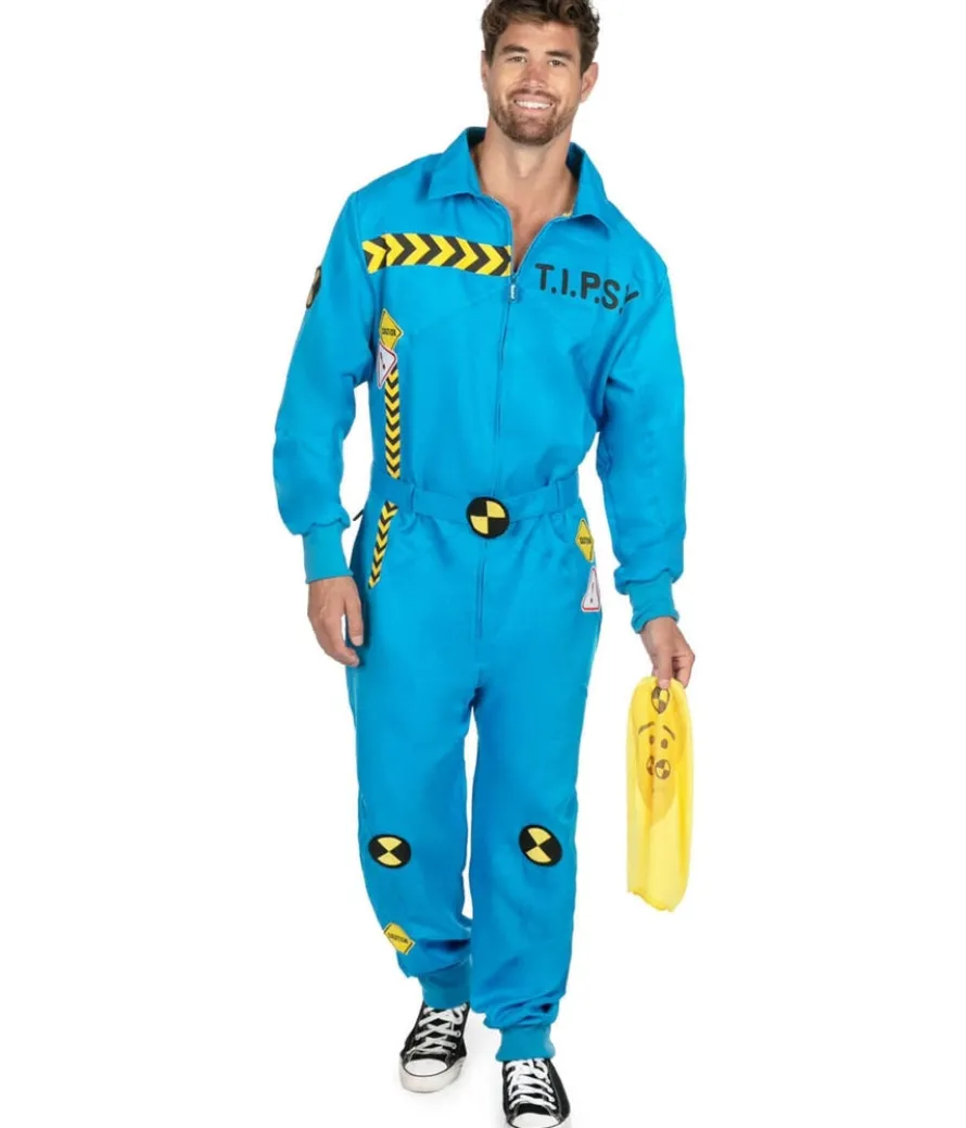 We know you’re pretty dang smart. You were valedictorian. You have a 3.16 GPA because Pi. But it can be hard making friends when you’re so brainy. That’s why we made you the Men’s Crash Test Dummy Costume. It’s a two-piece jumpsuit and mask combo that not only hides your face for a few moments but also makes everyone else feel a little less intimidated by your IQ. This is a classic, powder blue costume that dresses you up like everyone’s favorite exploding mannequin. The crash suit features all sorts of warning signs that will probably give your potential love interests a glimpse at your red flags. One of them being that you’re so smart. So wear the Men’s Crash Test Dummy Costume to your next Halloween party. Just keep your head on straight, okay?