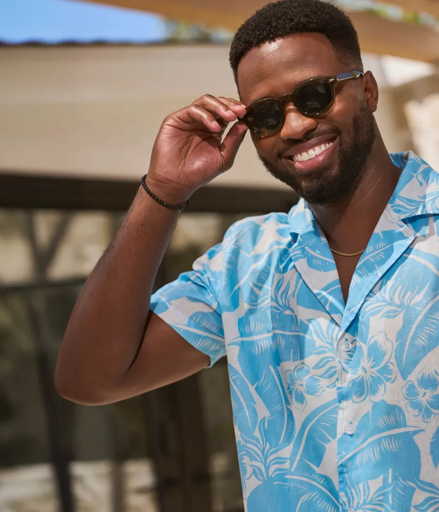 The Frond of Paradise Linen Cabana Shirt blends a luxe linen feel with a botanical print that turns heads faster than a conga line. It’s breathable, slightly bougie, and 100% best-worn with a drink in hand and zero itinerary. Frond and fresh—this linen Hawaiian shirt is your new passport to paradise.