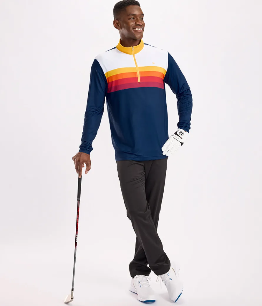 Tee off in golden-hour style with the Men’s Slice of Sunset Golf Pullover. Made with a breathable yet cozy fabric blend, this pullover offers just the right amount of warmth while maintaining flexibility. The sunset-inspired design is made for golfers who like to keep things colorful.