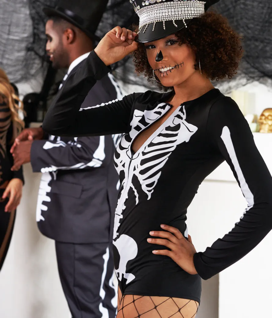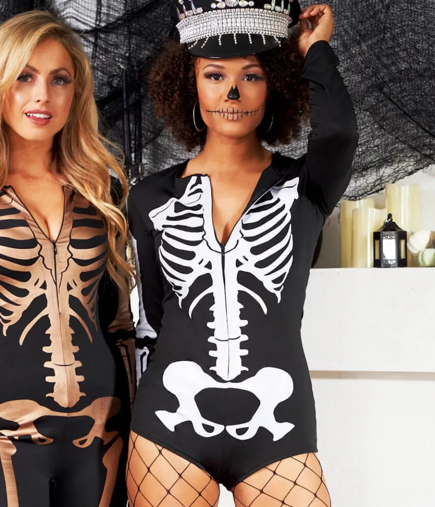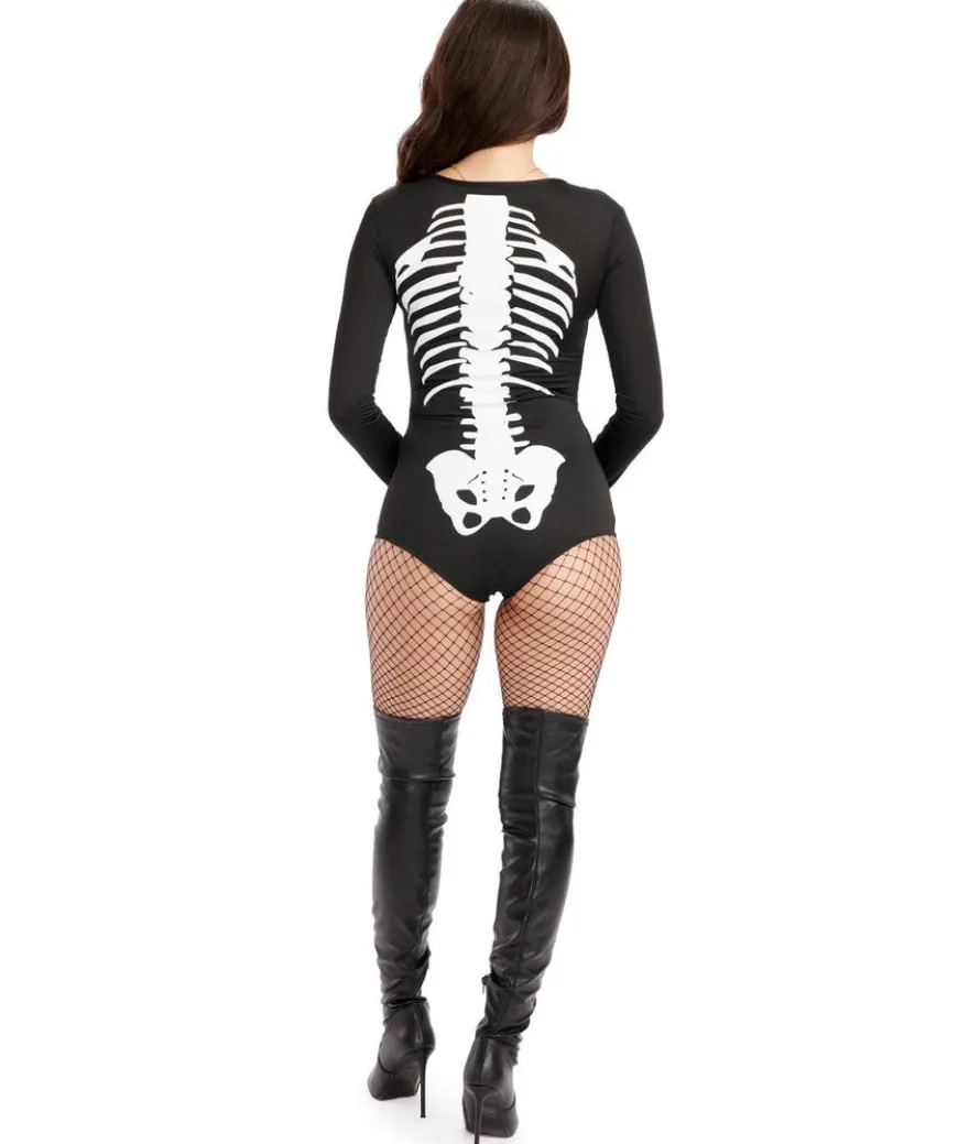 Who said skeletons can’t be sexy? It’s the one time of year where bones can somehow look hot, so turn it up to 11 with this Women’s Sexy Skeleton bodysuit costume. Ideal for Halloween parties where dancing is a must, this skimpy one-piece allows you to move around so freely, you’ll feel like you’re boneless. Here’s the kicker – you’re not! In fact, it’s pretty much a whole biology lesson in one, without the passing of notes or creepy teachers. Connect the X bone to the Y bone and you’ve got yourself a ribcage, spine and of course, those all-essential hips for dancing. Want to take your moves to the next level? Head over to our accessories section. There you’ll find a pair of fishnet tights for sexing it up, plus your own knee high bone socks to complete the look. It’s time to treat yourself this year… no tricks required.