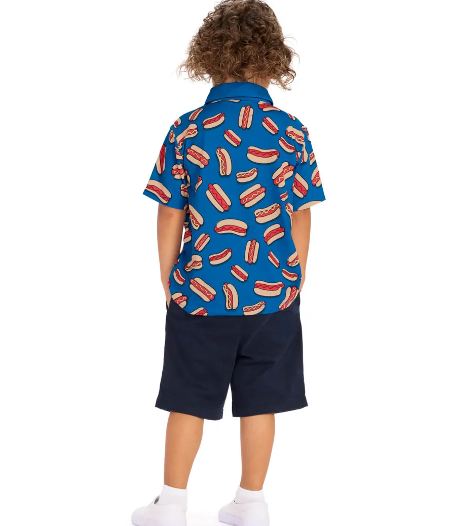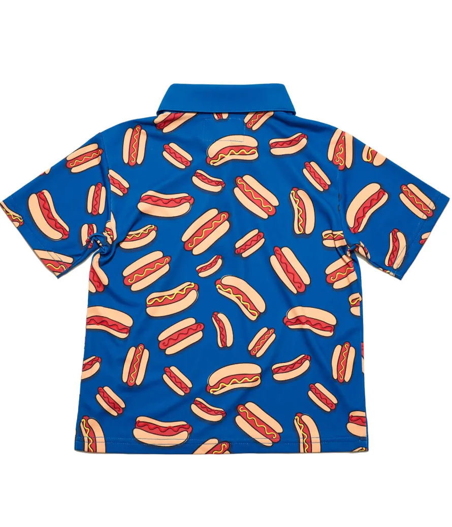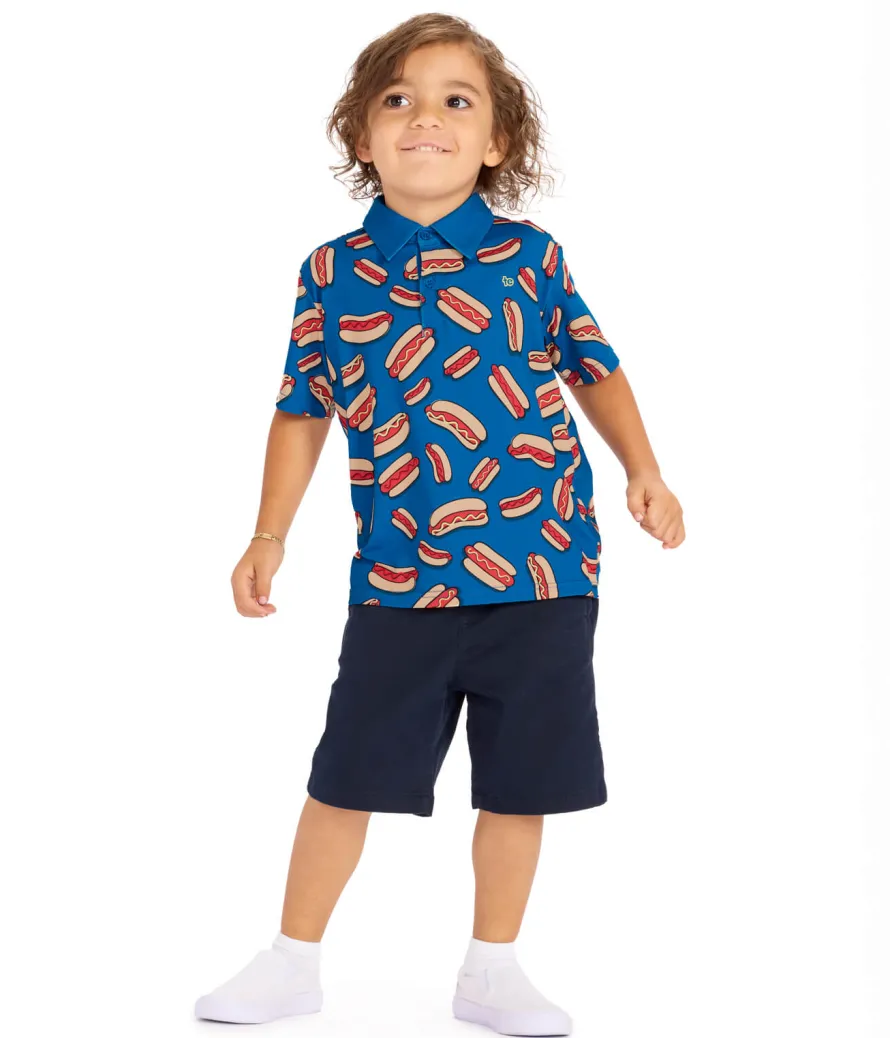 First comes the green, then comes the grill. Raise ‘em up right from a young age in the Toddler Boy’s Hot Dog Golf Polo, featuring all of the ingredients to create the perfect day. Not only does it create the most comfortable golf swing, it’s also a look into the perfection that is the post-match celebrations.