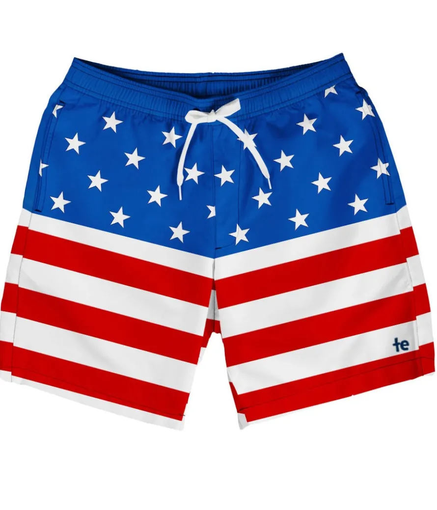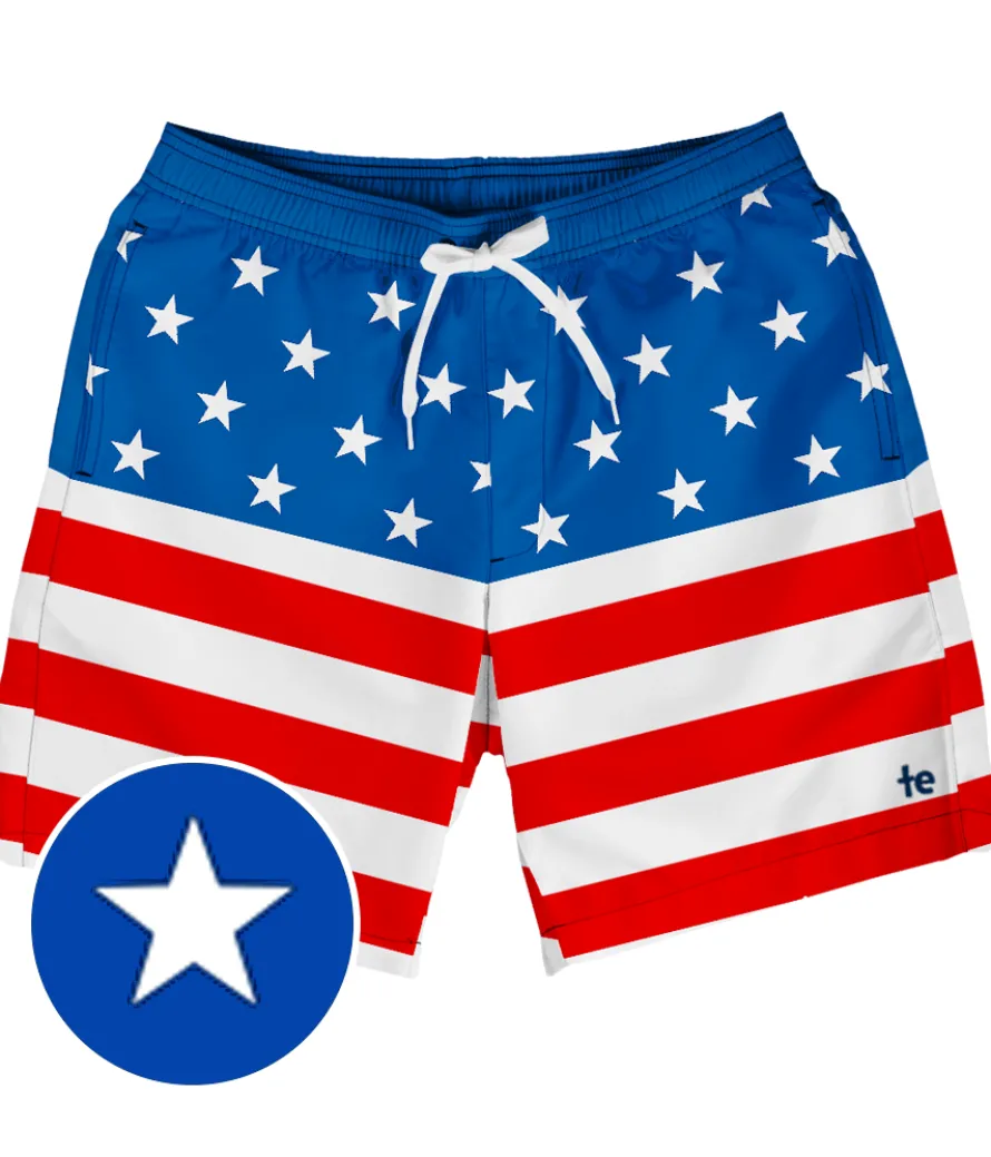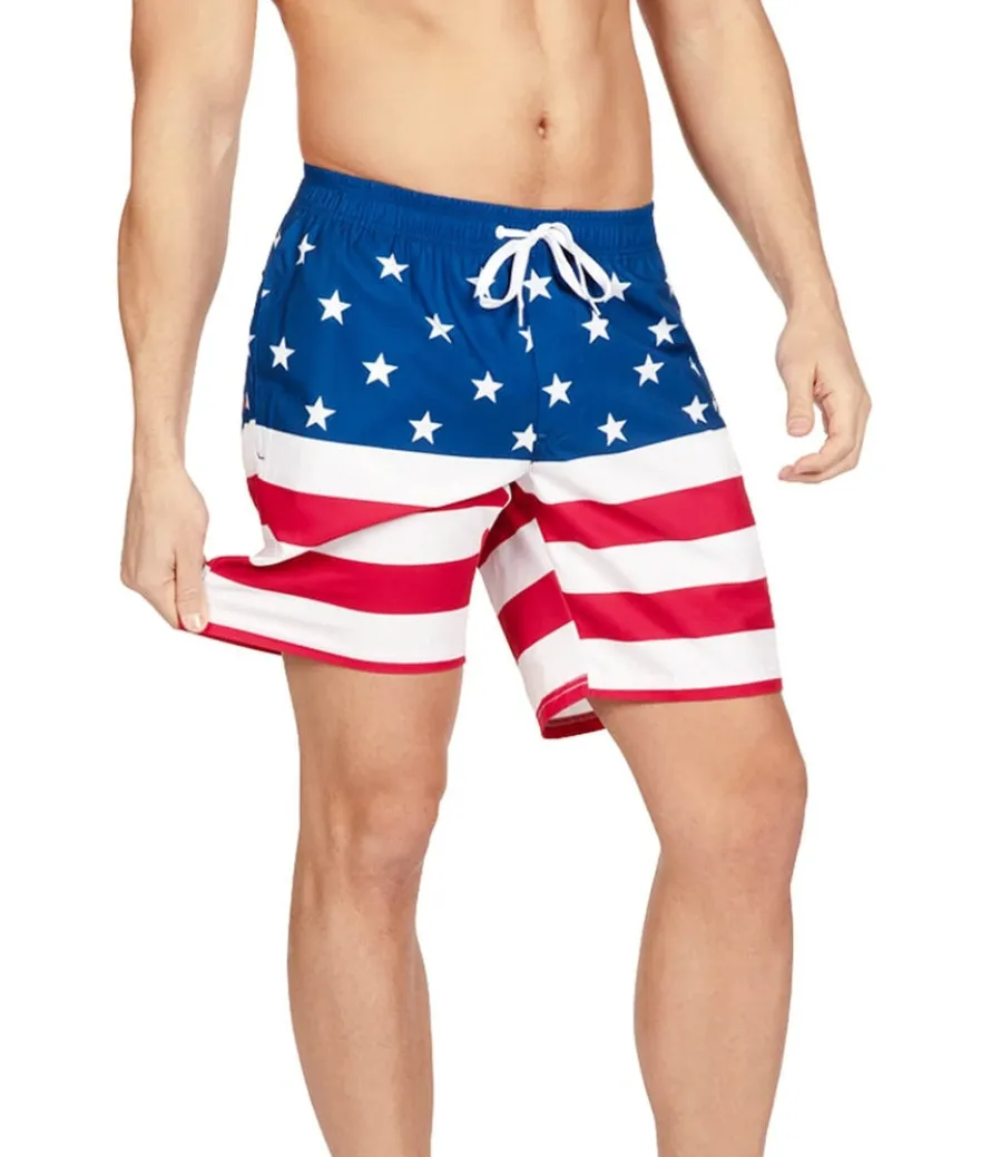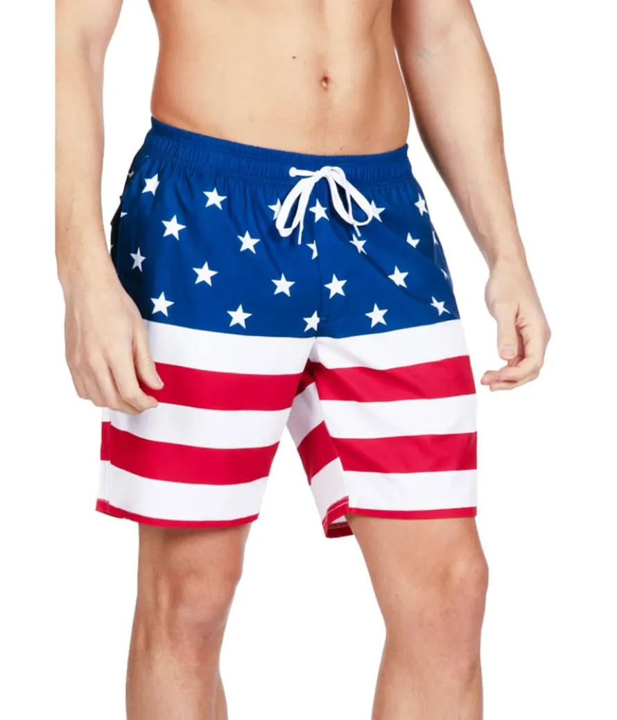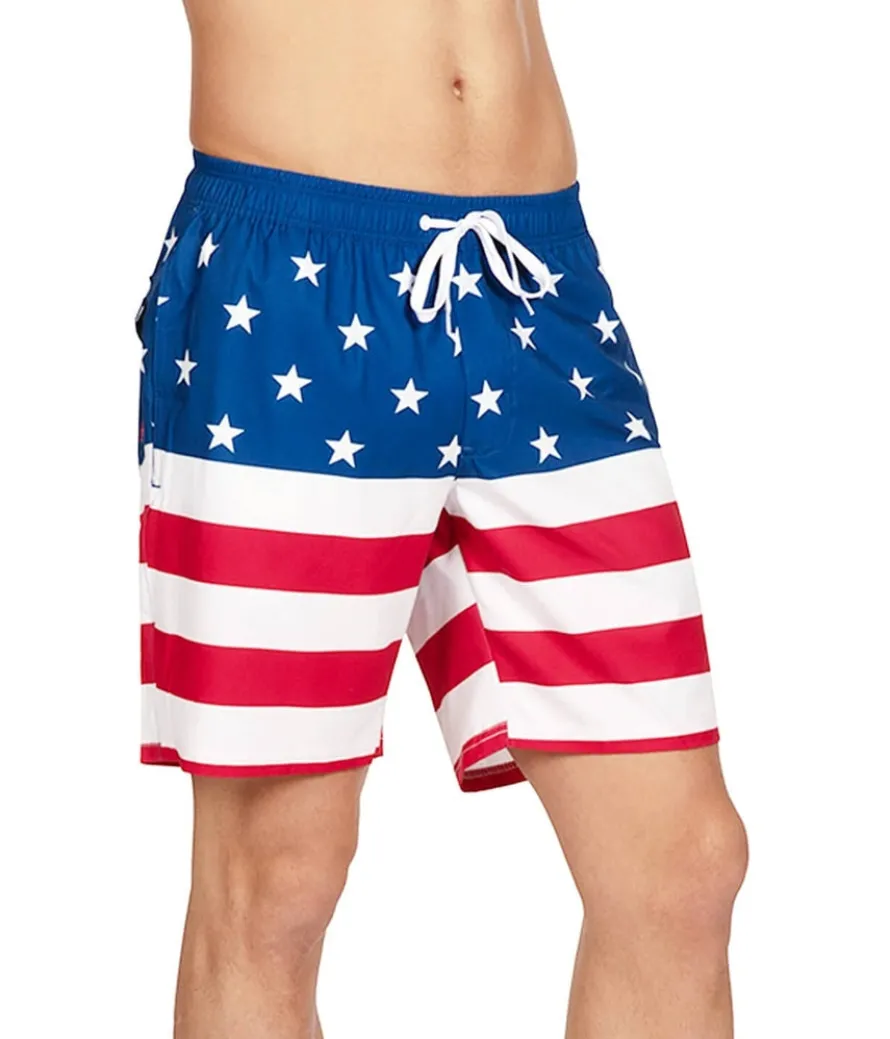 Nothing symbolizes America more than the flag, no matter where it’s shown. Rock your country with pride in the classic American Flag Stretch Swim Trunks! The flag will never go out of style, and neither will the comfortable stretch you feel when you throw on these bad-boys. Oh say, can you swim any better?! Not really.