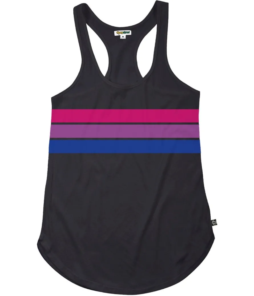 There is no wrong answer when it comes to love. That’s pretty neat. The bi flag is the ideal way to let the world know where you stand, in colors that look great with pretty much anything. Wear the Bi Pride Flag Racerback Tank Top to every celebration and wear your pink, purple and blue loud & proud!