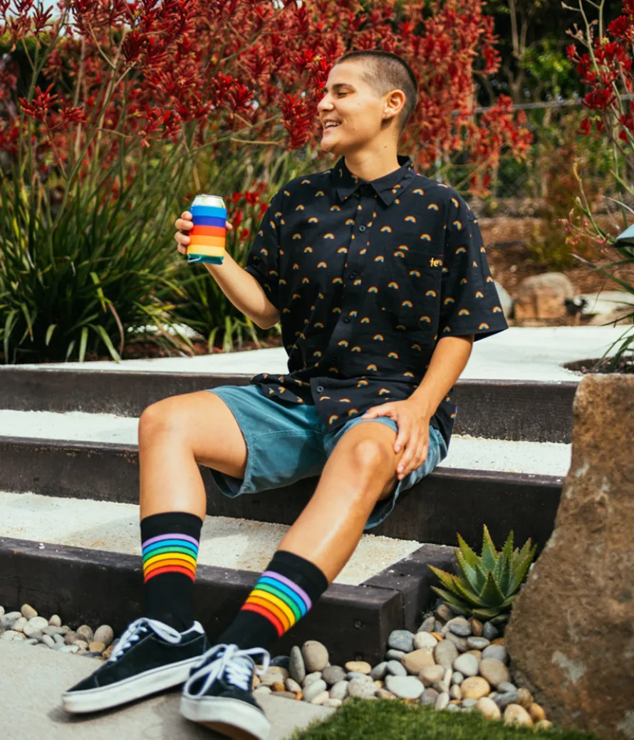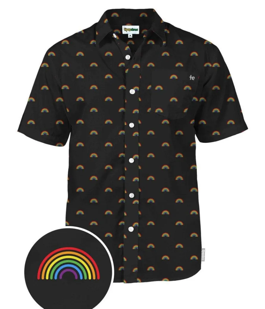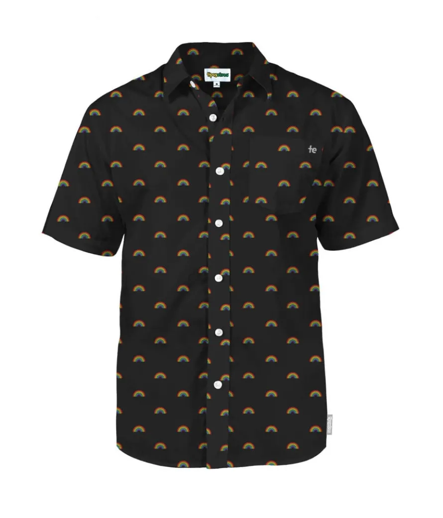 It’s your way or the highway, right? Well, we’ve got it every way with our (Men’s) Black Rainbow All the Way button down shirt. This super slimming button-down features hundreds of teeny tiny rainbows on a suave background – perfect for impressing your buddies at the parade or hitting the dance floor.