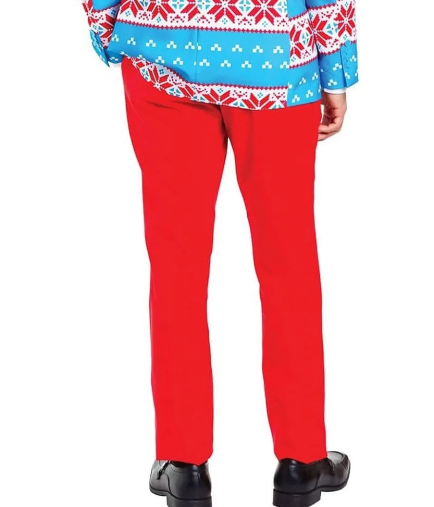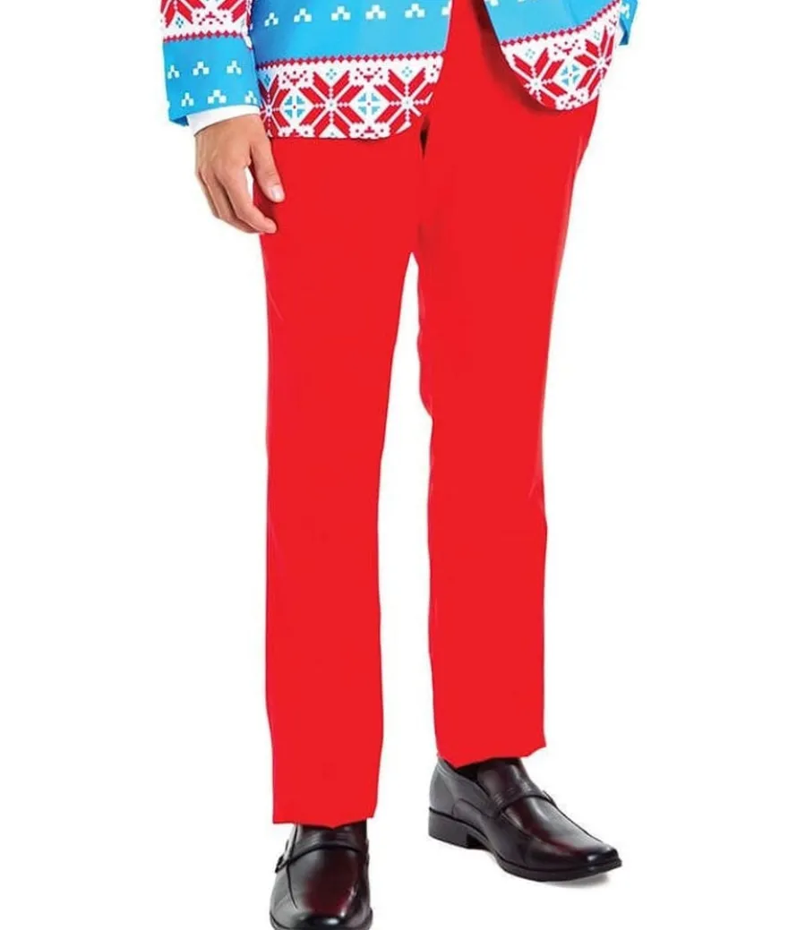 Looking for a pair of red Christmas pants, but can’t commit to the beardy white trim? Try our Blizzard Baller Suit Pants, the red Christmas suit pants that will complement any festive outfit. Though these have been specifically designed to go with the Blizzard Ball Suit Jacket, they’re so versatile you could wear them pretty much anywhere, throughout the year! If you really want to turn heads in the office, team them with an equally bright jacket like the Blizzard design as mentioned above, or throw on a pair of Santa boots and a red sweater. They’re even hot enough to wear on the golf course, so if straight Santa suits aren’t your boss’ thing, turn up in these babies and you’ll be ready for a promotion.