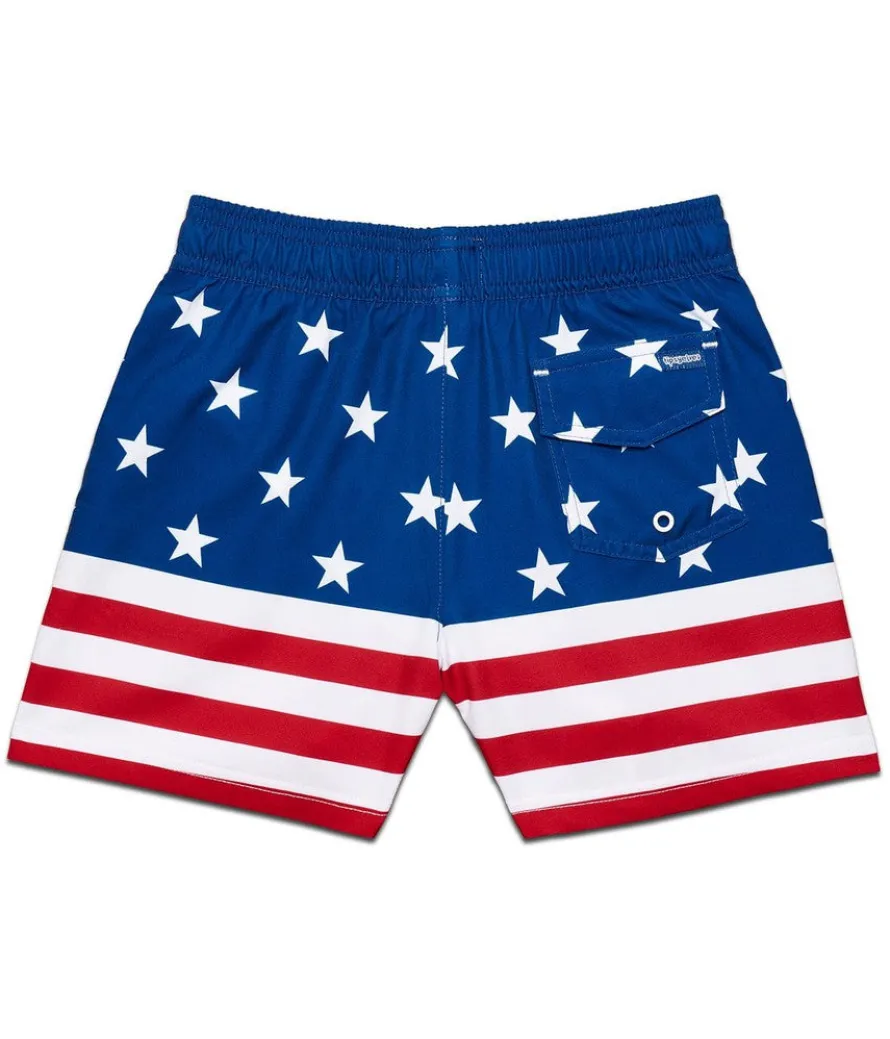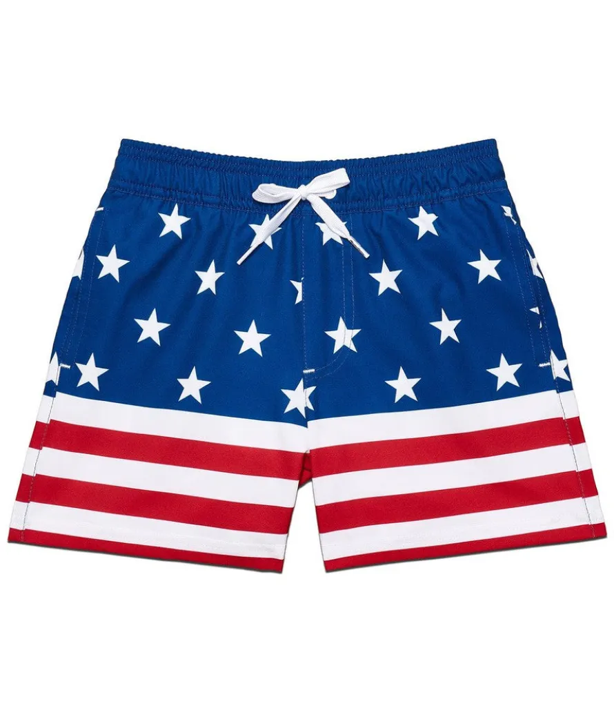 Those random school holidays he loves so much? President’s Day, Memorial Day, 4th of July? It’s all celebrating the same thing, son. Consider these his celebratory swim trunks, one he can wear every beautiful day away from the classroom. Fly those freedom colors in the Boy’s American Flag Stretch Swim Trunks!