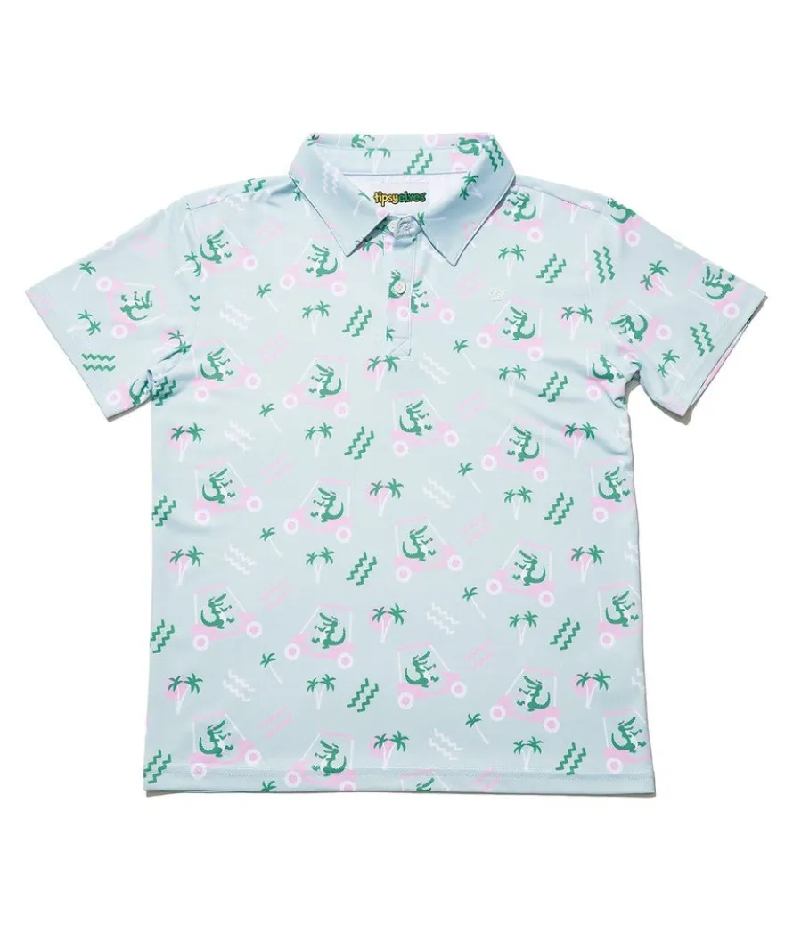 Is it unrealistic, or is it the future? We’d like to think it’s the latter. Open their imagination to the possibilities in the Boy’s Golf Cart Gator Golf Polo, featuring the happiest alligator you ever did see as captain of the cart. Never say never.