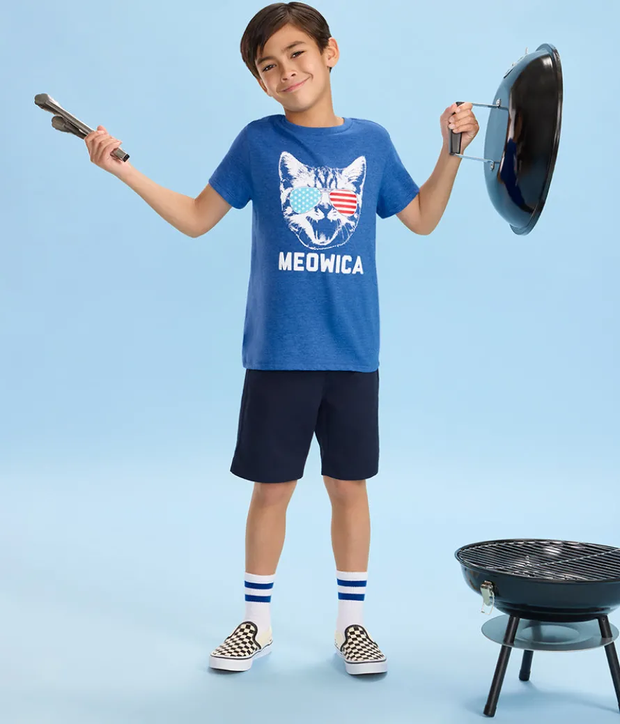 Red, white, and ready to pounce. The Boy’s Meowica Tee gives classic Fourth style a cat-tastic upgrade. Comfy, colorful, and made for feline fans who like their freedom with whiskers. From fireworks to freeze tag, this tee keeps the cattitude high and the good times rolling.
