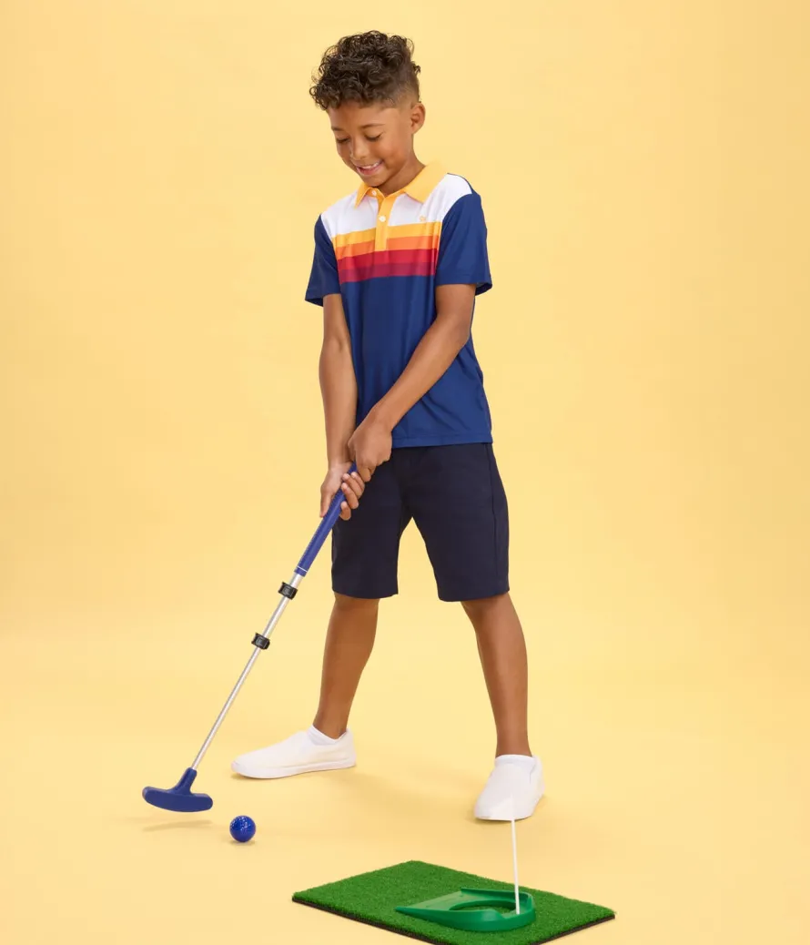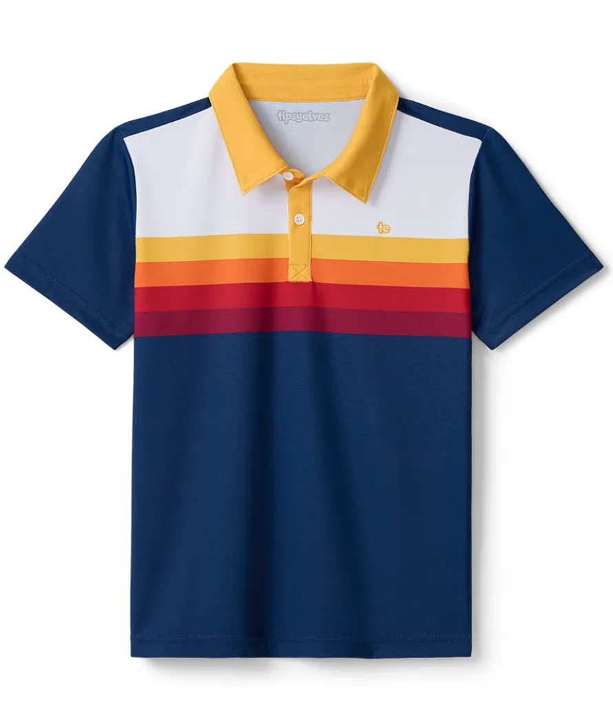 Bright, bold, and built for young golfers who love to stand out. The Boy’s Slice of Sunset Golf Polo features a soft, breathable, and moisture-wicking fabric to keep him cool, dry, and focused. Its vibrant sunset-inspired design brings energy to every round, while the lightweight material ensures unrestricted movement. Whether he’s perfecting his swing or cruising in the cart, this polo delivers comfort and style all day long.