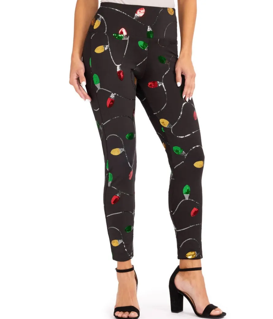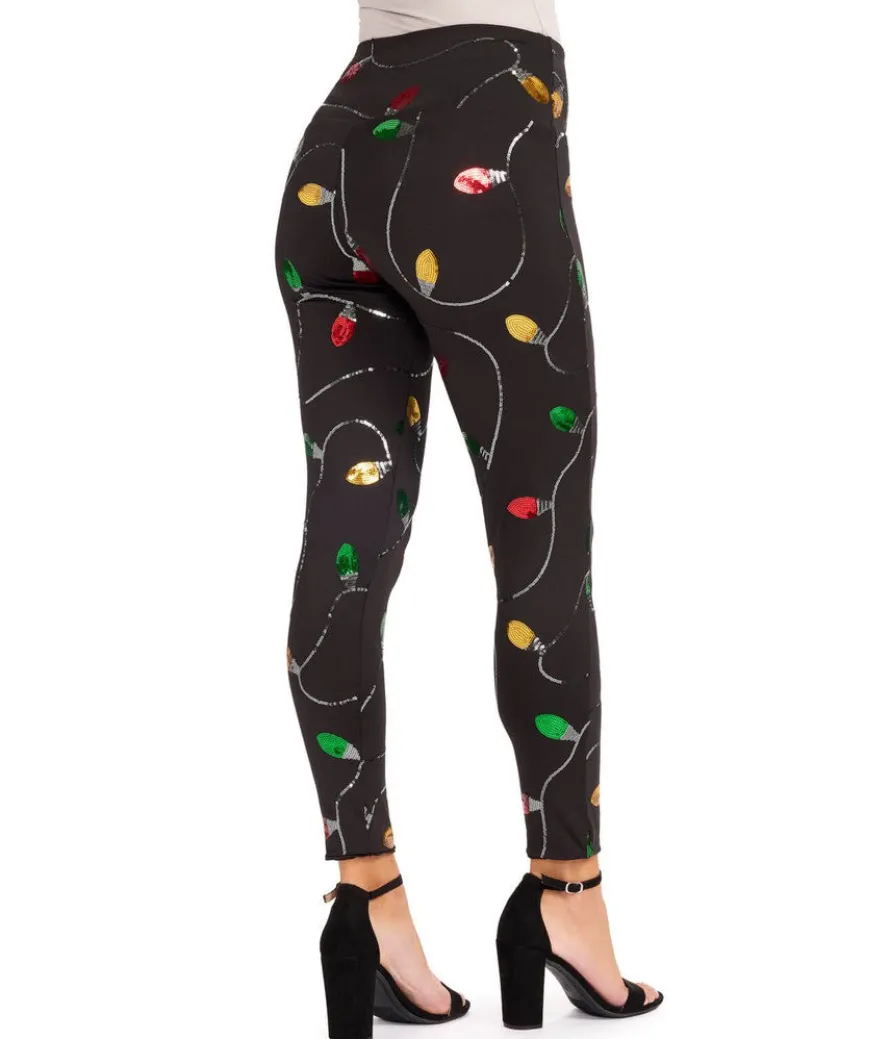 Ever had to untangle a strand of lights? Or had to change a burned-out bulb? They bring – the opposite of Christmas cheer. Lucky for you, these Christmas Lights leggings are lined to make them extra comfy while featuring a fun design that only looks like you’ve got untangling to do. On the contrary, when you step out in these sequin embellished leggings, you’ll undoubtedly show just how bright you are AND that you’ve got your priorities straight.