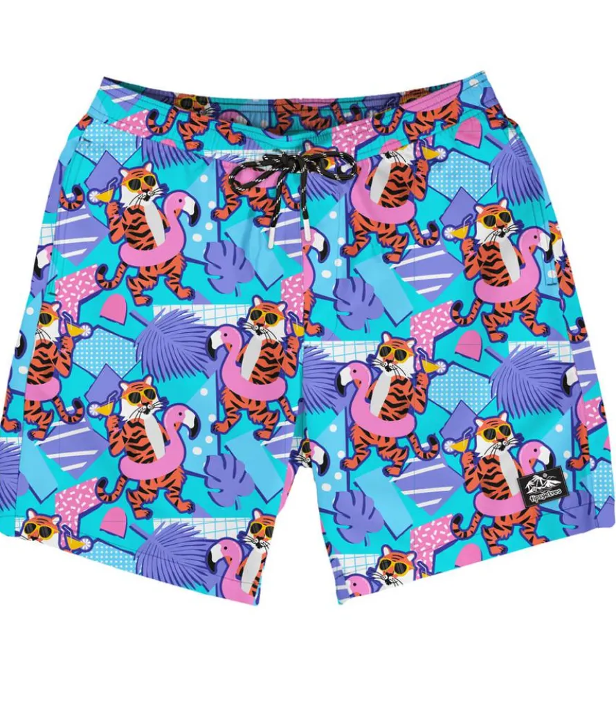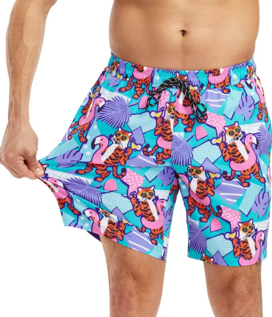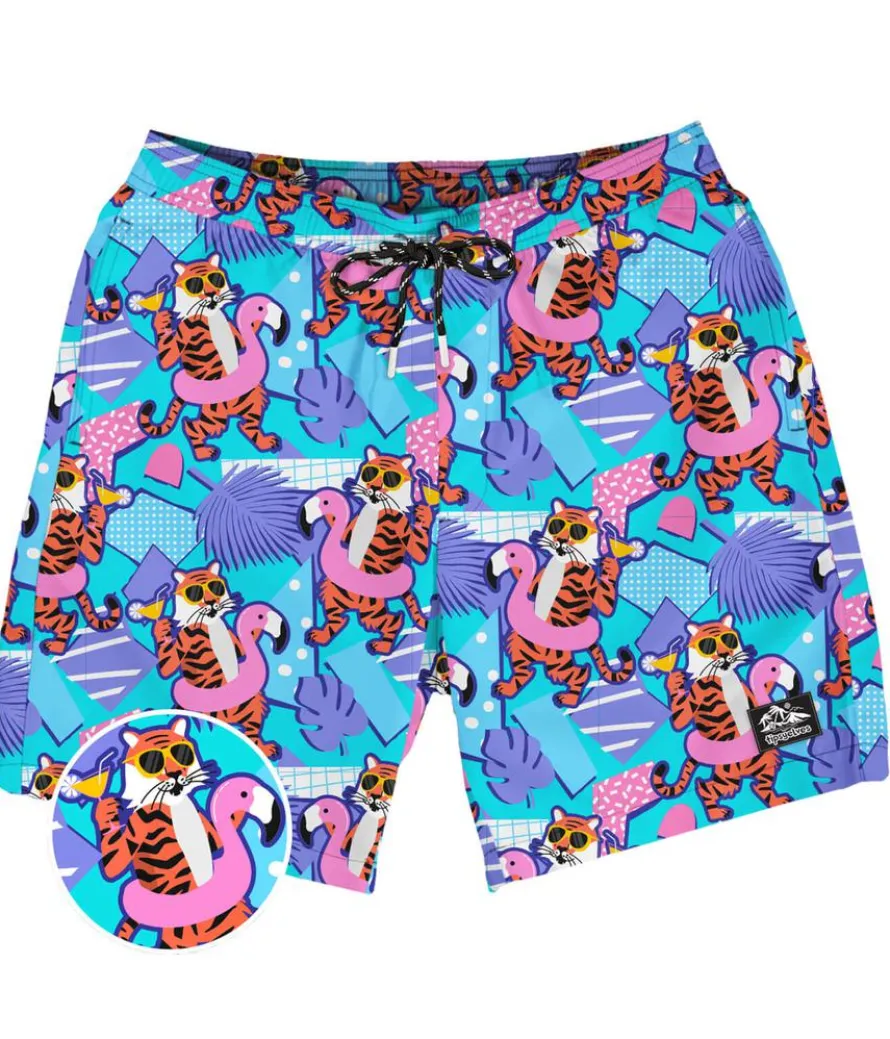 Alright, all you cool cats and kittens. Gather ‘round, because this one’s for you. We’ve reached the epitome of feline funkiness in the Cool Cats Stretch Swim Trunks. This tiger is everything we’ve ever wished to be – unbothered, buoyant, and properly beveraged.