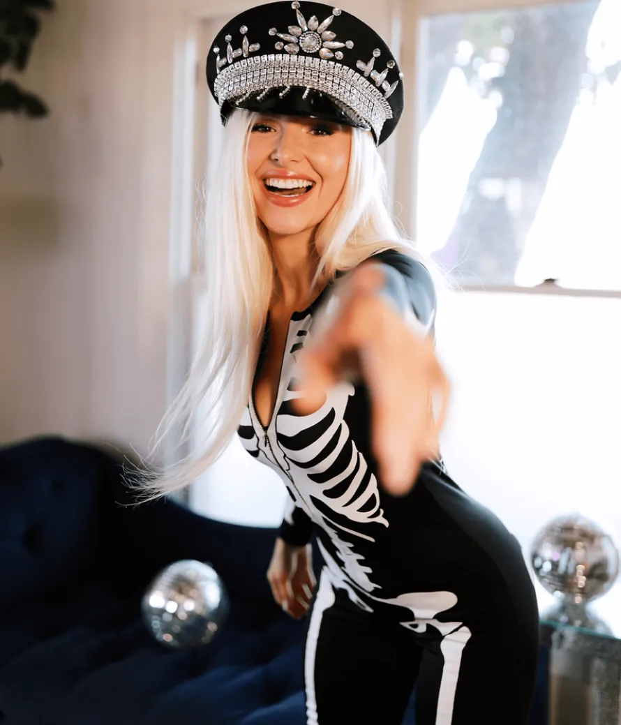 Our Festival hat is great for those who like to play dress up – use it to complement a night of Halloween karaoke or add it to our sexy Women’s Skeleton bodysuit. Encrusted with jewels, it has all the look of a sexy skeleton with a little added bling, so you’re pretty much ready for any kind of party. Feel like you’re having a bad hair day? Hide all manner of sins under one funky hat. Your guests will be so mesmerized, they won’t even notice.
