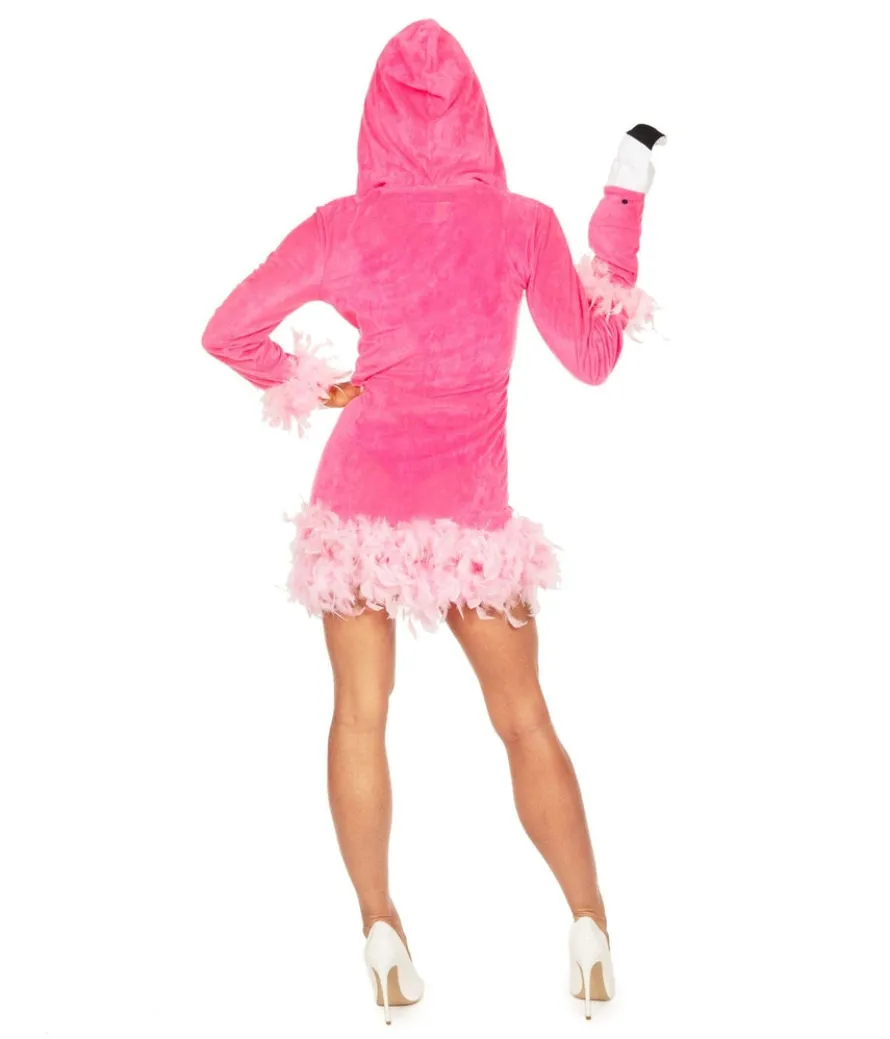 Pretty in pink. Not just a cheesy movie, but your whole vibe this Halloween with this stunning Women’s Flamingo costume dress. This feathered ensemble comes with a headband to complete the look – go risque with bare flamingo legs or jazz it up with your own pair of pink knee-highs. Just remember the rule though – you can only stand on one leg for the entire night. Luckily, it won’t all be that difficult! Our cheeky flamingo dress comes with one convenient zipper from chest to hemline, so you can hop in and out of it with ease. You’ll even find a beak on your right arm – great for when you need to get your hands on a cocktail, stat! If you want to make an entrance in an outfit that can be worn on all days, not just Wednesdays, this flamingo dress is the party piece for you. Somebody call Animal Control.