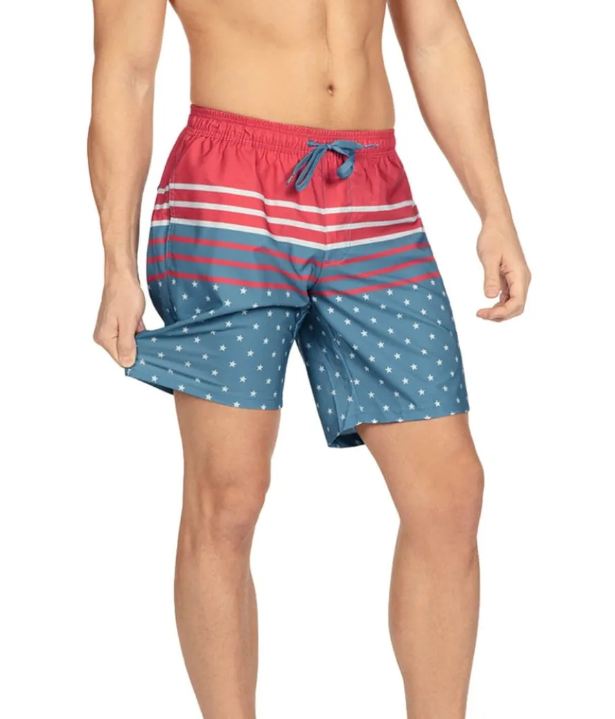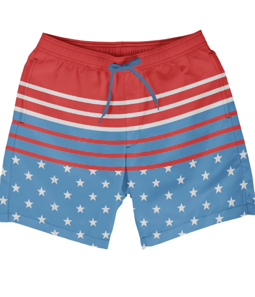Uh, freedom rang…they want to talk to you. More specifically, talk to you about your past 4th of July outfits of choice. You’ve been given all this freedom, and you aren’t wearing America’s red, white and blue?! That’s all about to change in the Freedom’s Calling Stretch Swim Trunks. In a comfortable stretch as free as the country that they’re symbolizing, it’s a win-win in comfort and looks.