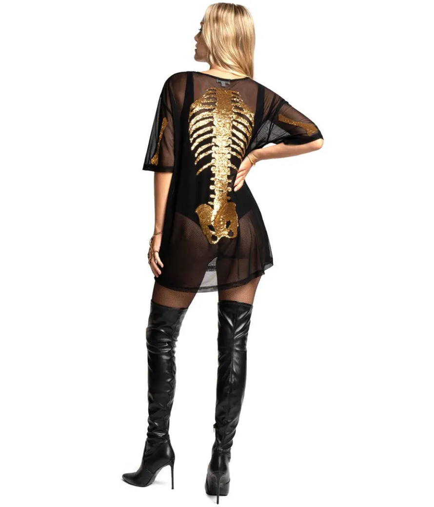 We hear you, Halloween isn’t everyone’s thing. We do however, want to make it as easy as possible for you to participate, which is why we’ve created options like the Gold Skeleton Mesh Costume Dress. It’s basically a large pajama shirt sprinkled with gold – dress it up with some knee high boots or take it straight to a couch nap. As long as you’re dressed up, every method is acceptable.