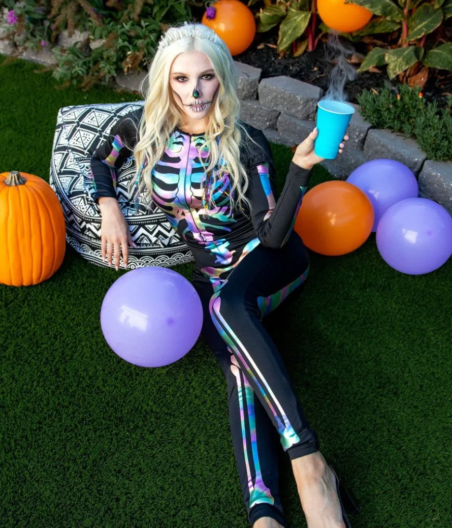 K, hear us out. Why do skeleton costumes never show organs? Like, why is there not a “nervous system” costume? Because that’s all boring and weird, that’s why. The Iridescent Skeleton Bodysuit Costume pays homage to the best system in your body (also because who would ever want an excretory system costume?). This skeleton costume is a full bodysuit that zips you up and conceals all of your epidermis. Because you really don’t want to get a ticket for flashing epidermis from the Halloween police. So, if you’re looking for the easiest, coolest Halloween costume you could possibly find, ignore those nerdy lymphatic system costumes and go with the classic. Get skeletal with the Iridescent Skeleton Costume and never have to worry about failing anatomy again! *