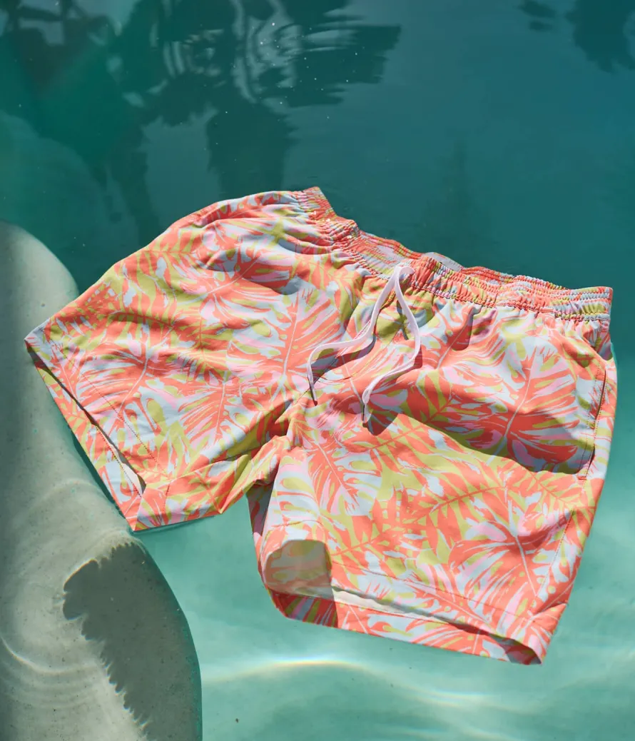 Turn over a new leaf—and up your swim game. The Leaf Luster Trunks deliver tropical glam with a tropical inspired print and performance stretch that lets you lunge, lounge, or limbo in style. Go tropical in Leaf Luster Swim Trunks—where bold print meets beach-ready performance.