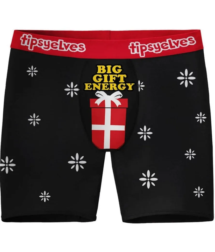 Looking for a way to woo your significant other this Christmas? Unlock the energy with our Men’s Big Gift Energy boxer briefs. Whip off your pants to reveal a ton of sparkling snowflakes – and one very promising gift package. We hope you’re up for the challenge. These boxers might be super soft to the touch, but you’re going full power.