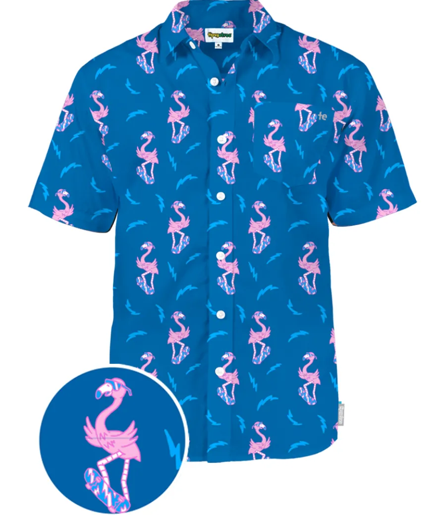 Here’s some career advice for you. Walk into your next board meeting and let ’em know simply, but firmly, that the bird’s the word. Write that down. Next tip, wear the ultra-rad Men’s Board of Paradise Hawaiian Shirt and let ’em know that you’re a professional when it comes to partying. The buttons are totes business casual, and the short sleeves let your forearms do the talking. Nevermind the all-over print of a flamingo that is absolutely shredding through life. This summer shirt says, “Raging is serious business. And business is good.”
