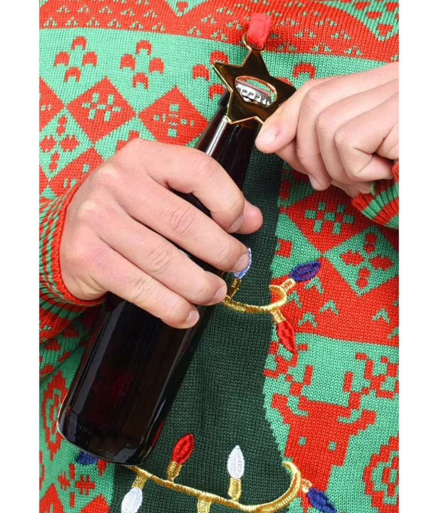 Bottles won’t be the only things opening for this sweater, if you catch our drift. The Bottle Opener Sweater comes with an attached bottle opener that also serves as the star on top of the Christmas tree that appears on the sweater. See how the Bottle Opener Sweater works in the video!