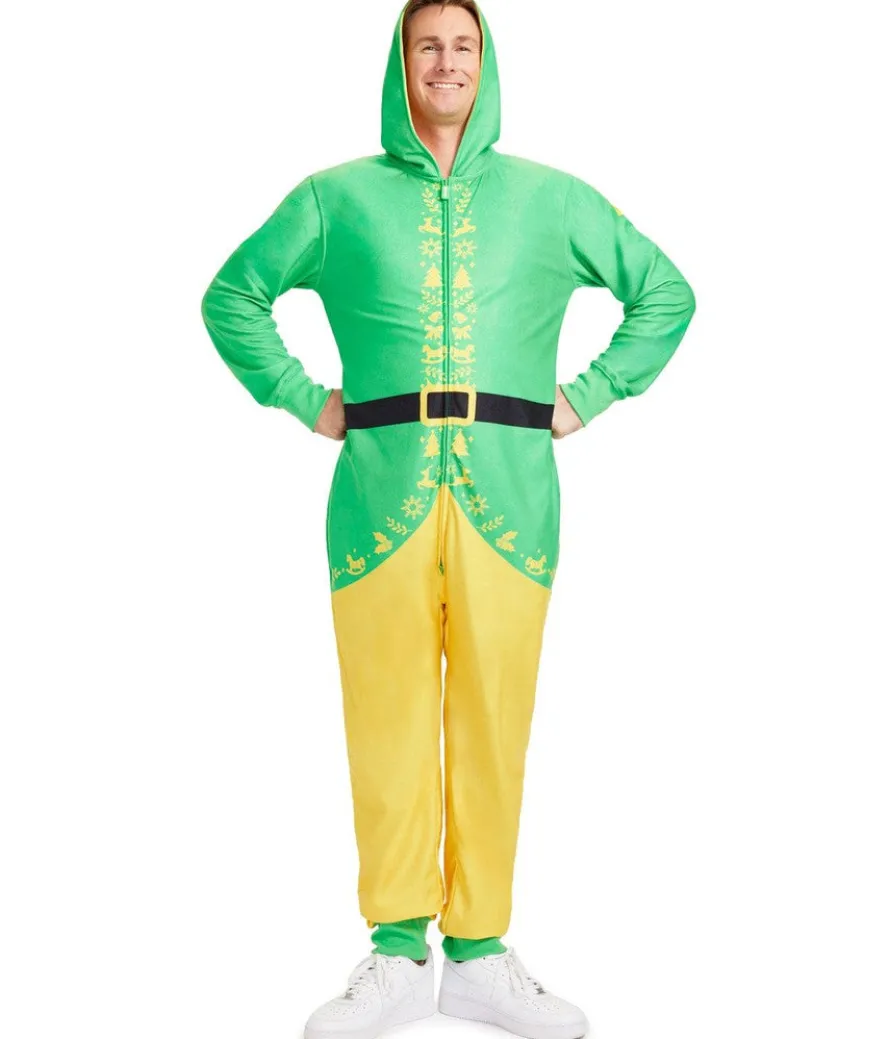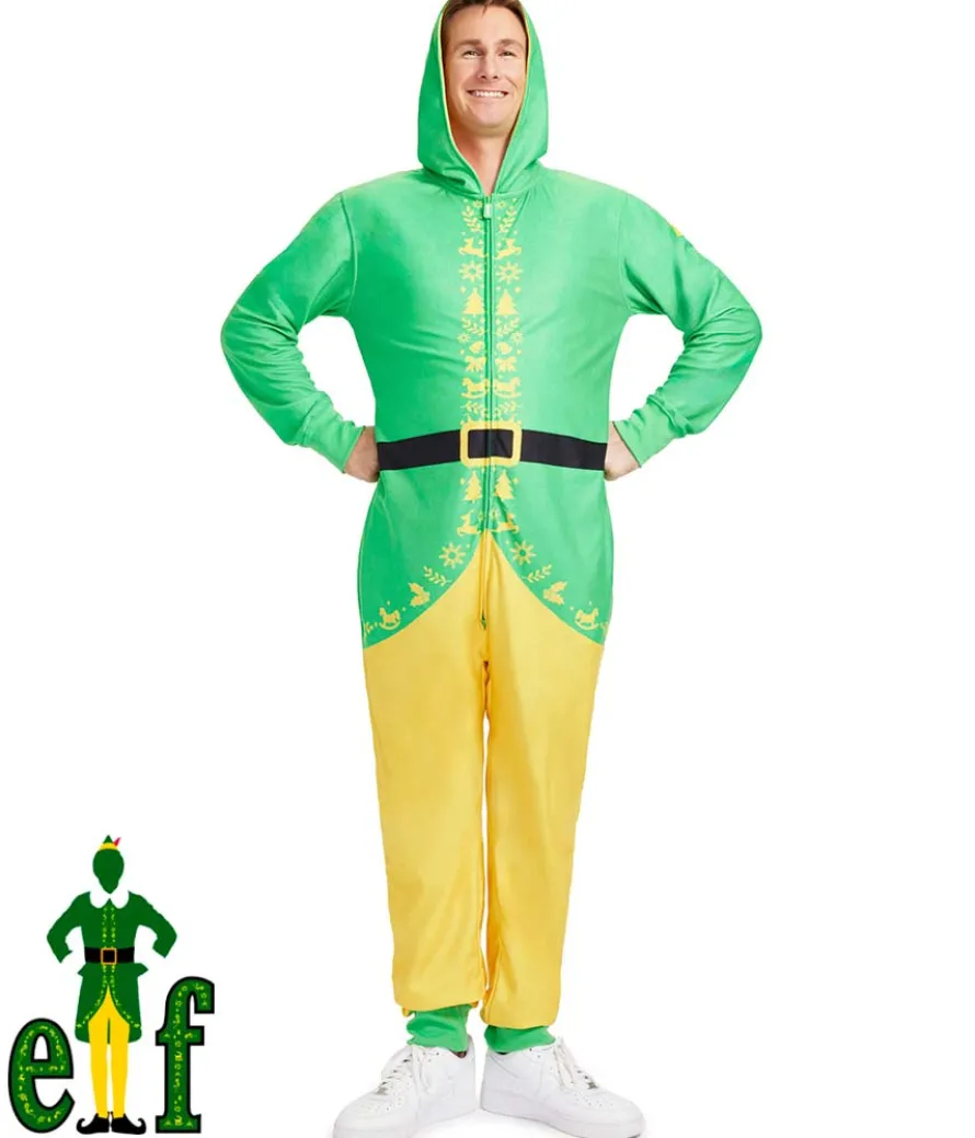 Authentic? Uh, yeah. Throw on this Men’s Buddy the Elf Jumpsuit and you’ll swear that YOU were the one that passed through the seven layers of the Candy Cane Forest on your way to the Lincoln Tunnel. Is this jumpsuit so official that we can guarantee you’ll be able to fashion rocking horses out of existing office furniture, be a deadeye in a snowball fight, or wake up craving Pop Tart spaghetti for breakfast? Hey, never say never.