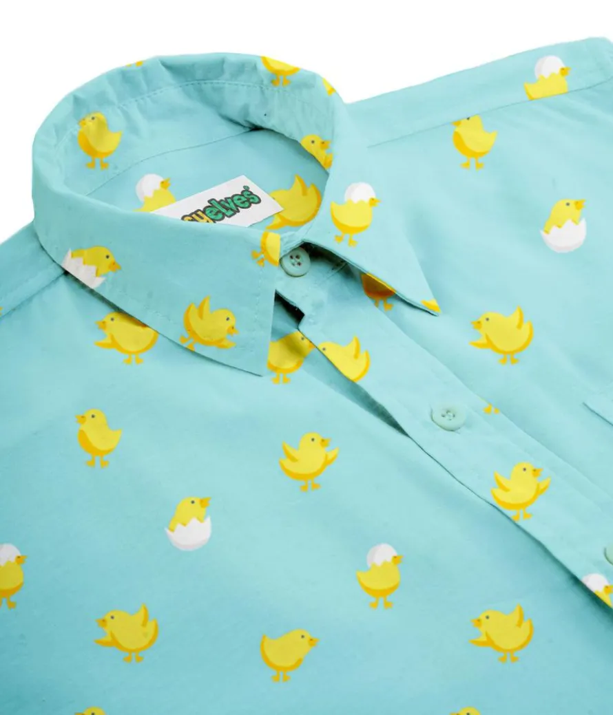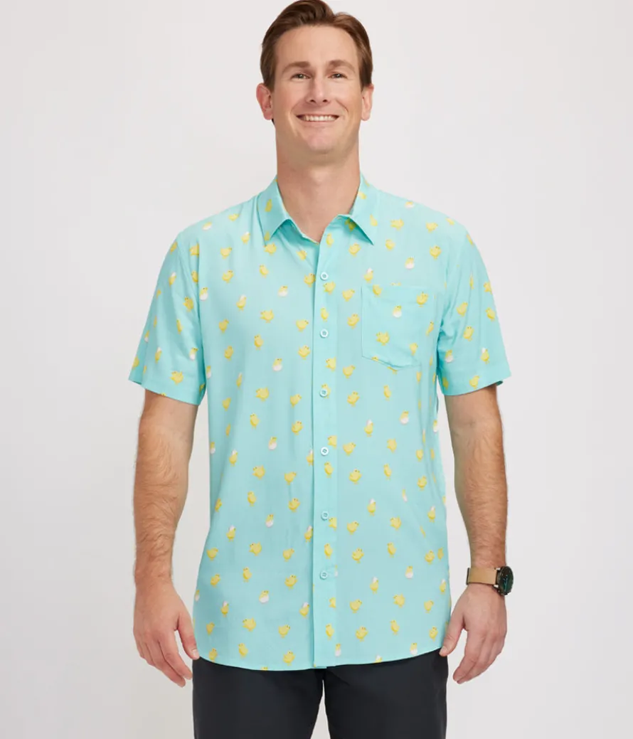 When you told your bros you were the chick magnet nobody asked for specifics. Still, at least you’ll be the most popular guy in the room once a year. This super cute Men’s Chick Magnet button down shirt features your favorite fluffy birds all over, helping you show off those guns.