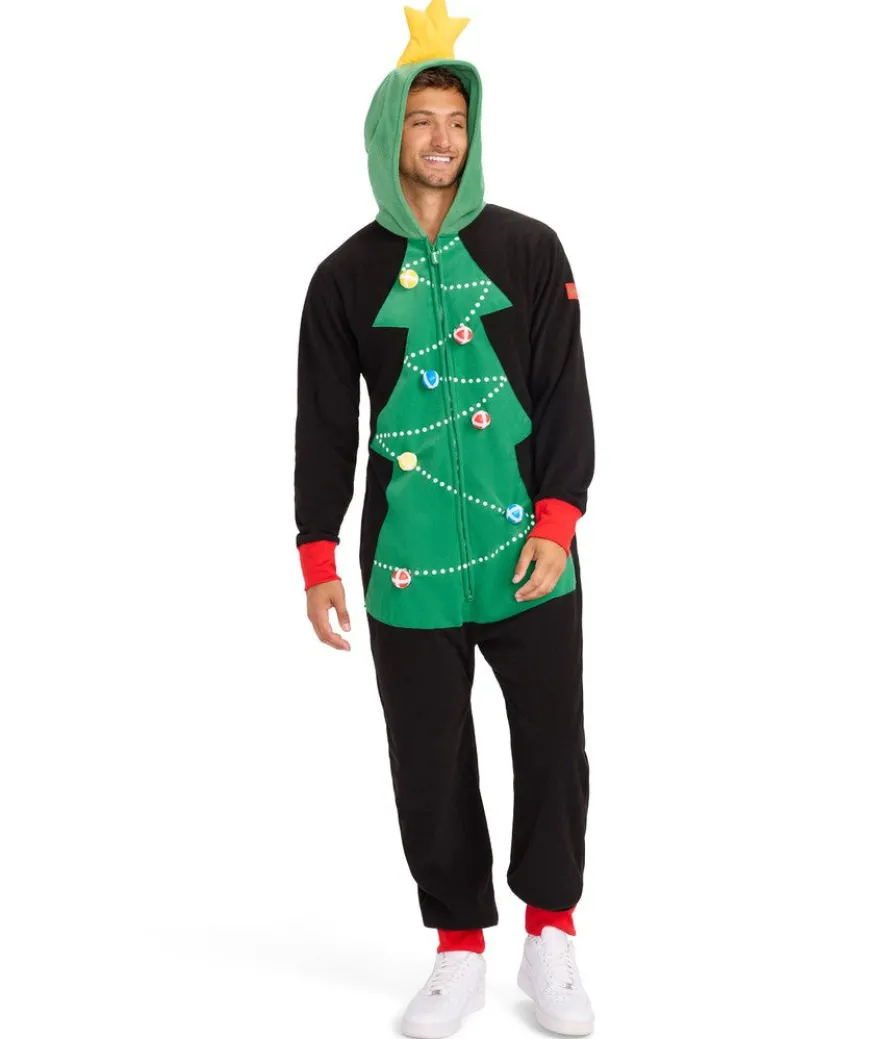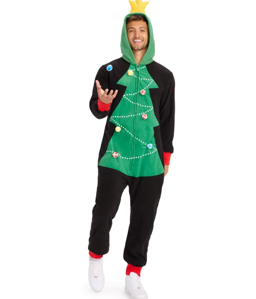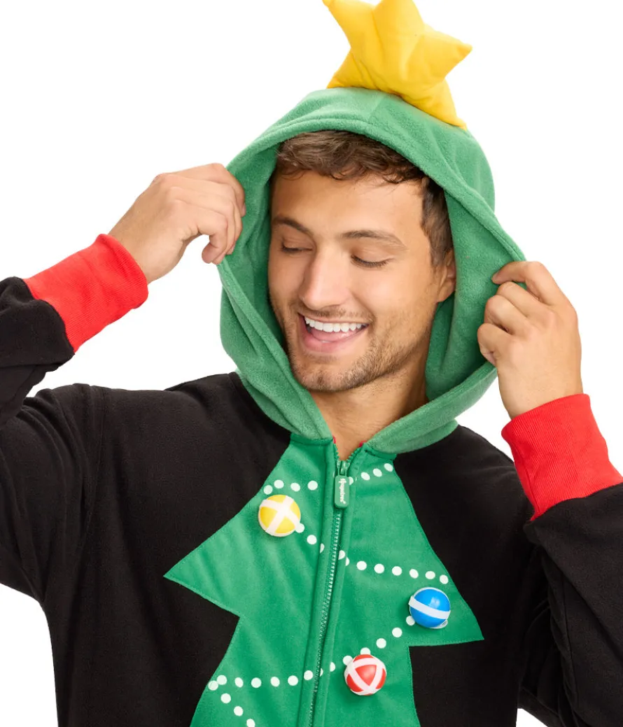 It’s every party boy’s worst nightmare. You rock up to a Christmas party full of good cheer, and it’s dull AF. Thank our lucky stars we’ve got this Men’s Christmas Tree Toss Game jumpsuit. Not only is it an epic jumpsuit, it’s also a ball game! Get all the ladies and gents involved as they try to throw Christmas light balls at you and see what sticks. It’s got a super toasty hood, ideal for those out of nowhere blizzards, and a convenient long zip for bathroom breaks. The party never stops when you’ve got this on. We hope you’re ready.