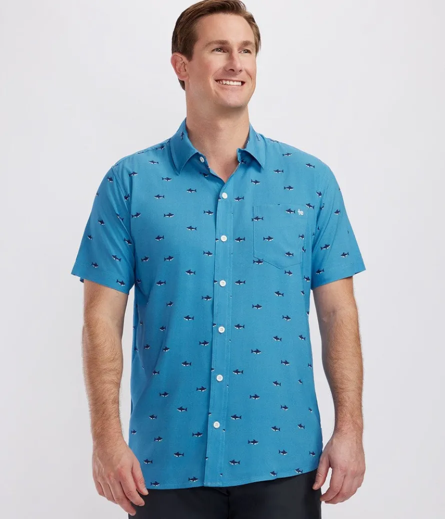 We’re gonna need a bigger boat. This summer, stay out of the water and party on the beach with this Men’s Deep Blue Sea Hawaiian Shirt. It features bone-tingling fins swimming all around your beach bod, so save yourself the speedos and recreate the experience on land.