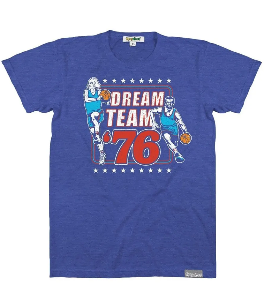 Looking for a fourth of July tee that’s a total slam dunk? Look no further than our Men’s Dream Team ’76 tee. For all of those old enough to remember those teeny tiny shorts, this is a nostalgic look back at our unstoppable Olympic basketball team. That’s gold medal-winning stuff.