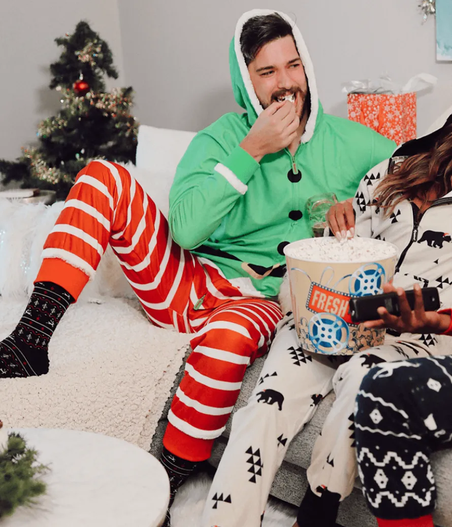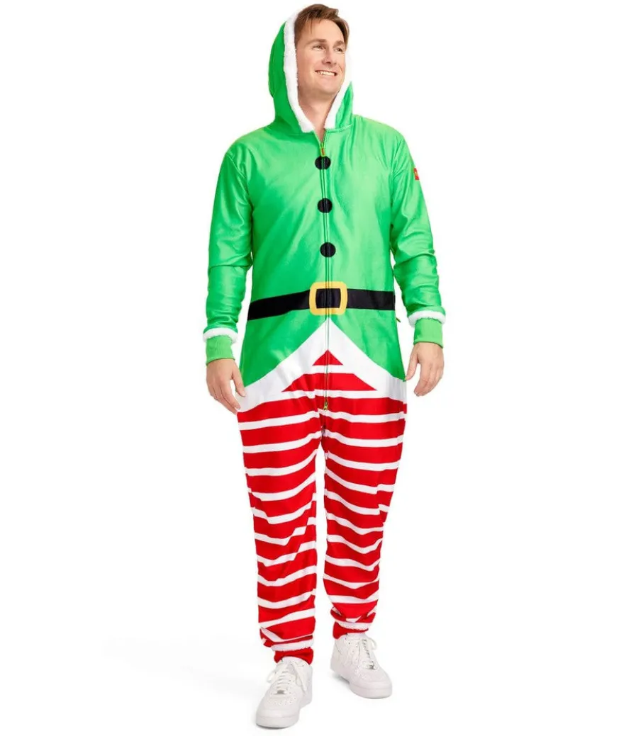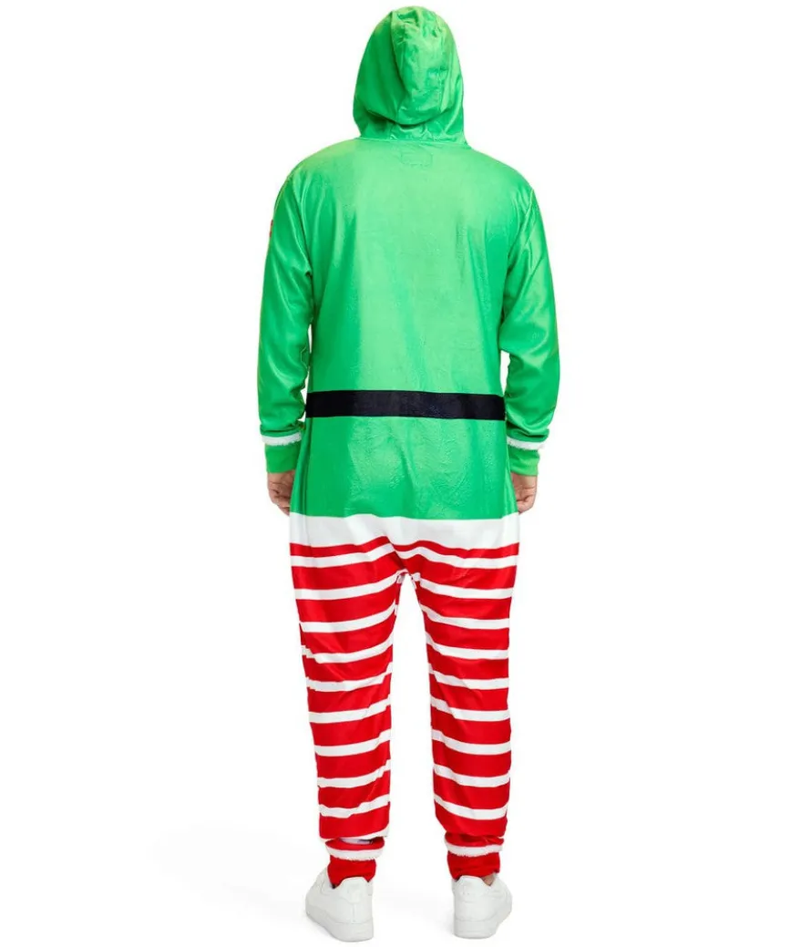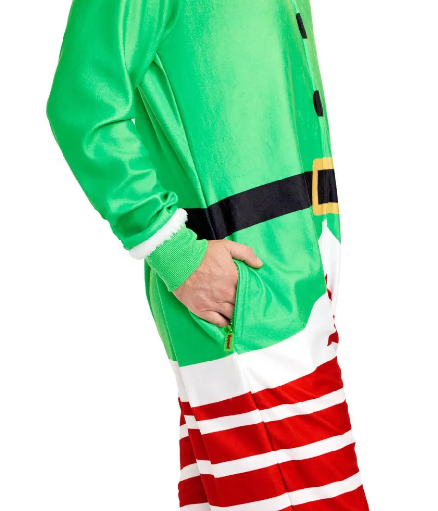 Get outta bed, little elf – it’s time to be one of Santa’s helpers. With our Men’s Elf jumpsuit, there’s no need to change. This super festive onesie features the classic candy cane bottoms and waist belt that would make Santa proud. Plus, it’s a relaxed fit so you can pile in a few extra yams with nobody noticing.