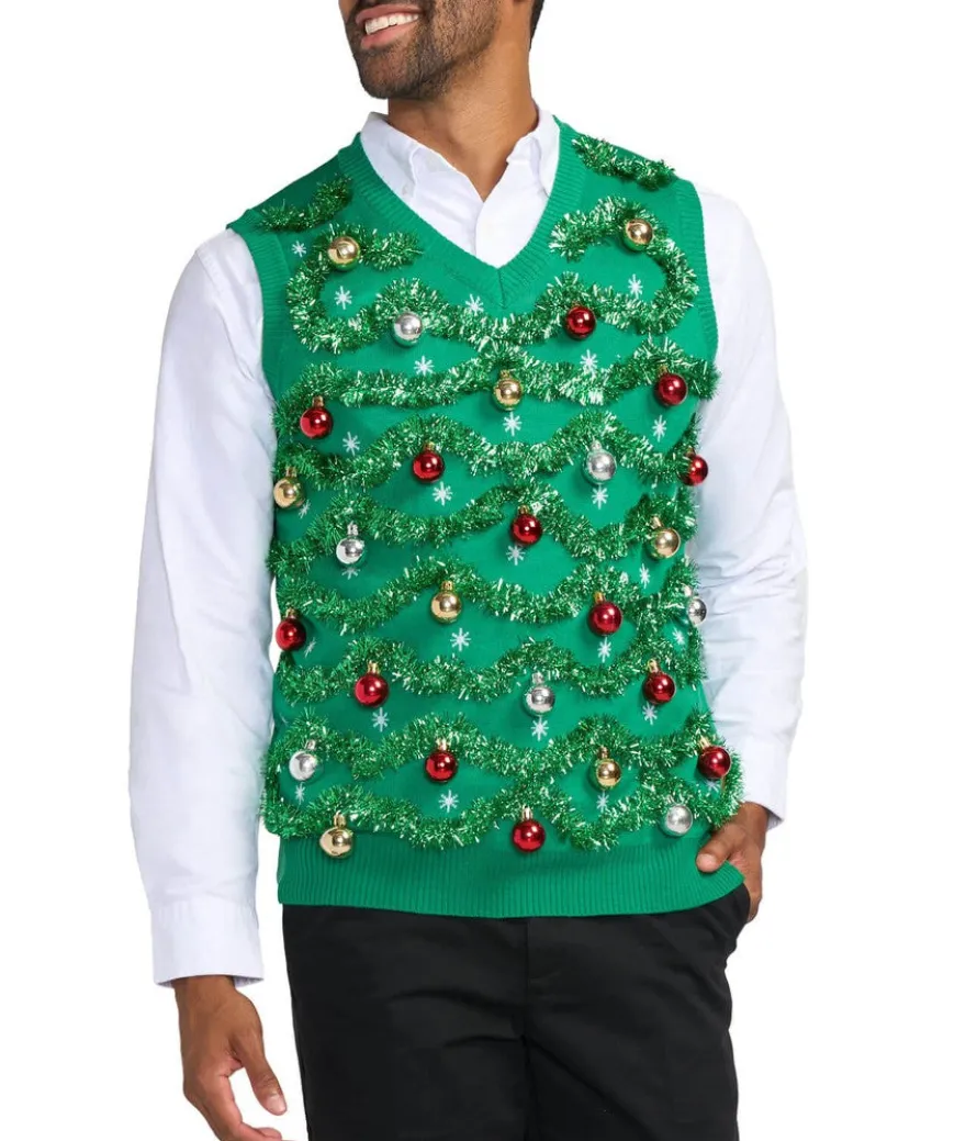 So you’re ready to show that Christmas spirit, but want to ease into it. Maybe you’re one of those overly eager Christmas lovers, and you’re dressing up in head-to-toe holiday while it’s still not too chilly out. The Men’s Gaudy Garland Ugly Christmas Sweater Vest is your solution. Stay just a little cozy in this vest variation of our best seller!