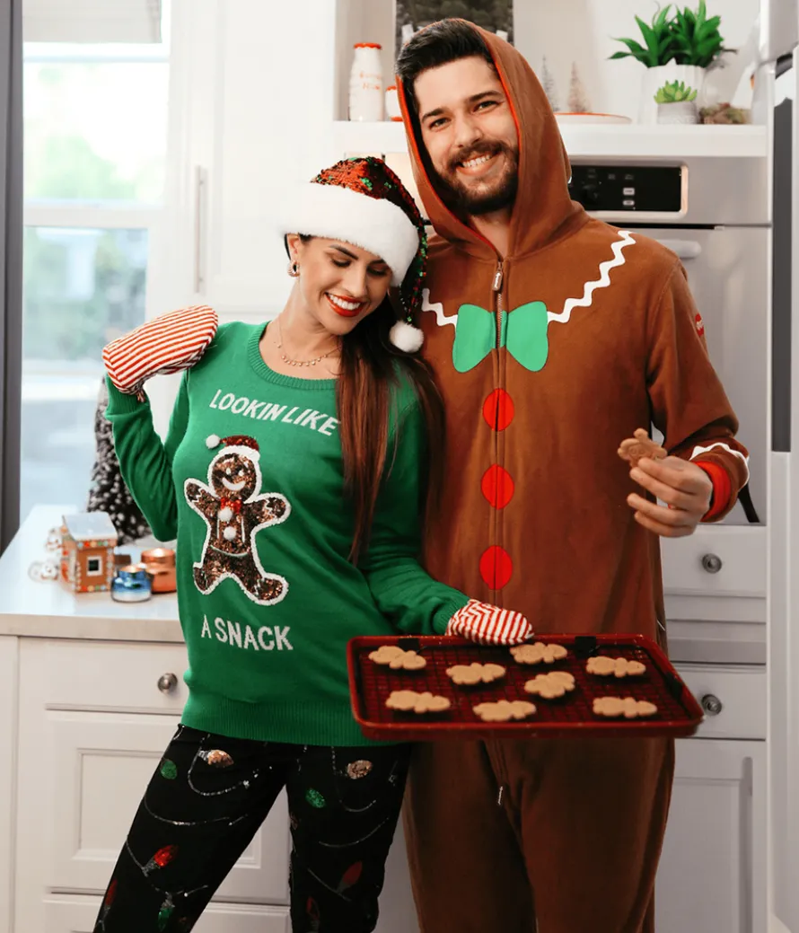Run, run, as fast as you can – you can’t catch me, I’m the gingerbread man. That’s the beauty of our Men’s Gingerbread Man jumpsuit. It’s super comfortable and extra mobile – great if you need to leave a party in a hurry. This full-body piece isn’t scrimping on any details. It’s got frosting on the wrists and ankles, plus candy buttons up the torso. There’s one convenient zipper for easily throwing on and off – ideal if you’ve had a few too many eggnogs. Here’s one sweet treat that won’t have you reaching for the looser pants this Christmas. Rock that party.