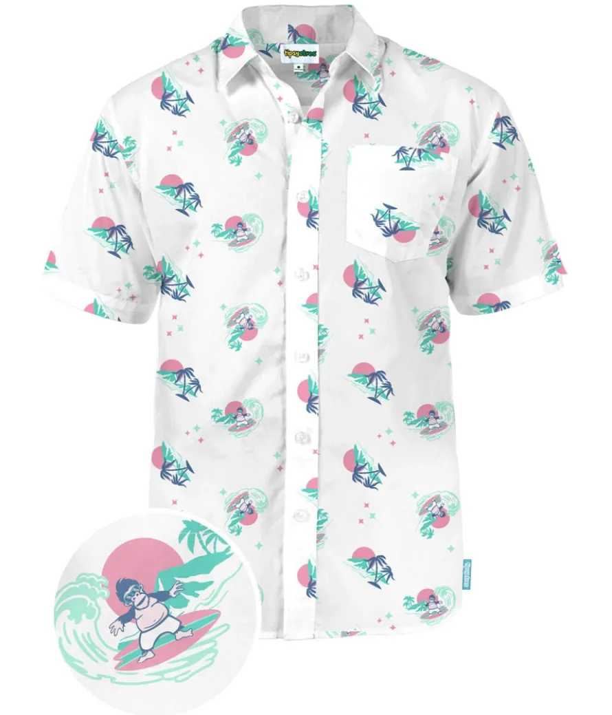 We’re here for a good time, not a long time. For as long as humankind can remember, man has been doin’ it all for the thrill, and monkeys are no exception. We have them to thank for our carefree nature and spirit of adventure – and somewhere in that timeline, surfing came along. Thank goodness for that – wear this completely theorized series of events proudly on the Men’s Gorilla Thrilla Hawaiian Shirt.