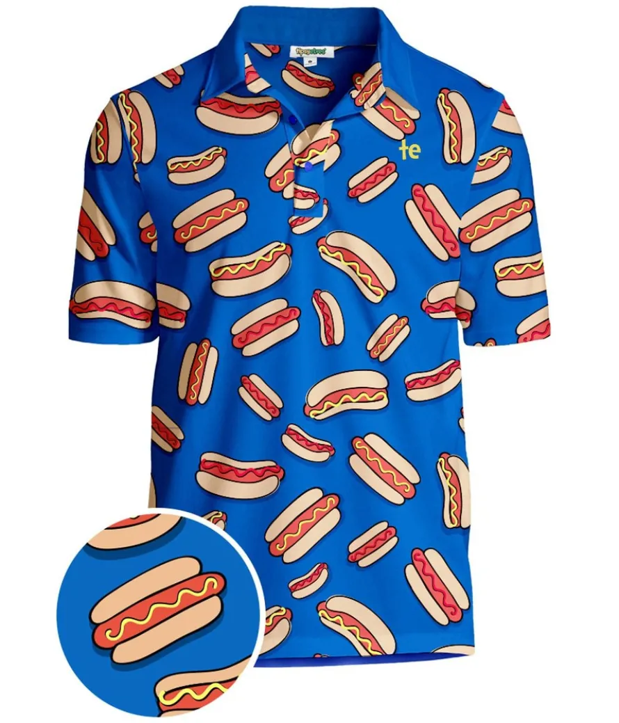 You dog, you. The Men’s Hot Dog Golf Polo will have you lookin’ like an all-American snack while you’re on the course. Made with premium materials and a comfortable fit, this polo gives you the mustard to catch up with the cute foursome in front of you. Wear the Men’s Hot Dog Golf Polo when you’re on the links with the boys, and y’all will be lookin’ like the hottest ones on the fairway, even if you’re driving from the ladies’ tee. The Men’s Hot Dog Golf Polo is the best way to take attention away from your poor long game by putting footlongs on your torso. All that, and you’ll finally be able to answer, “Who let the dogs out?”.