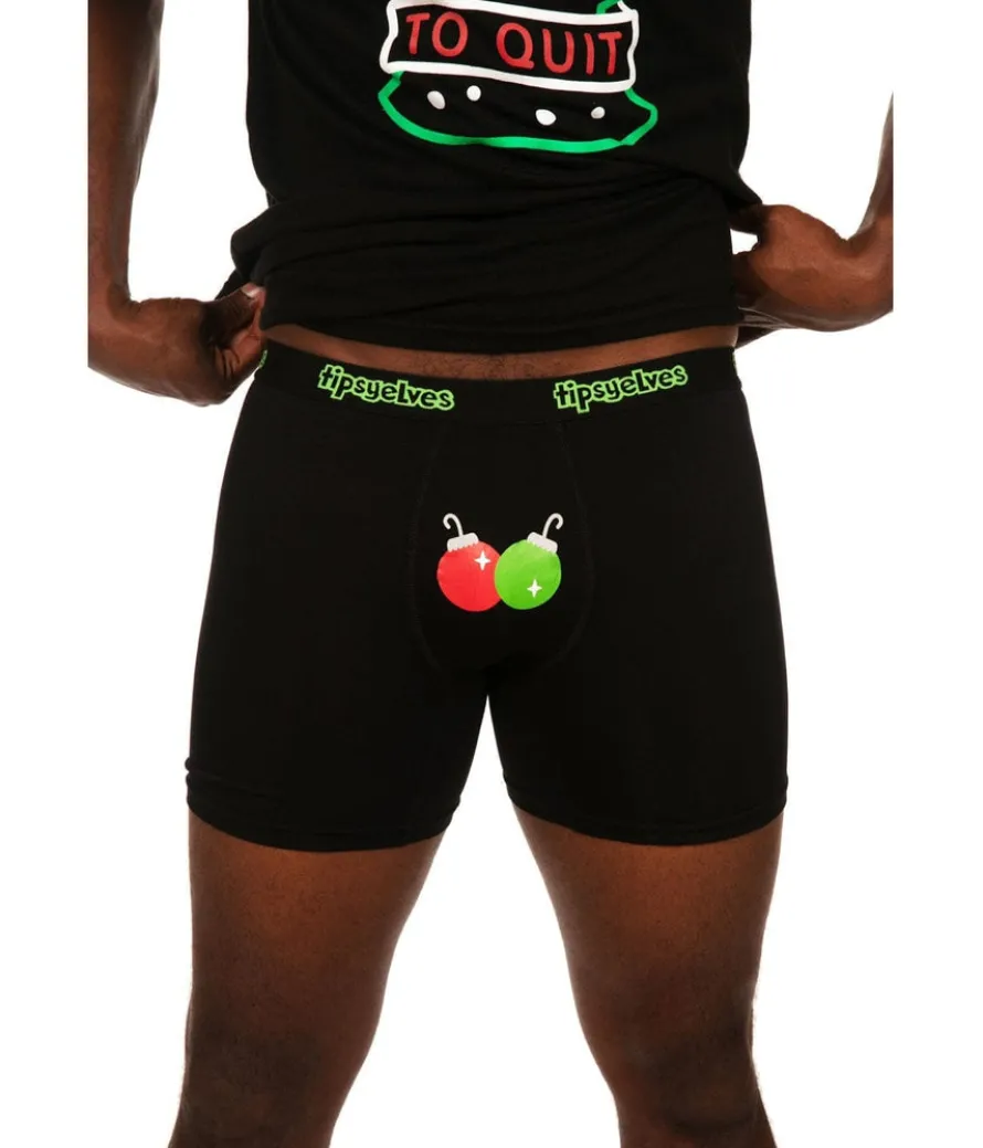 Jingle bell jingle balls, what’s the difference? Gift your Mr. Claus these Men’s Jingle Bells boxer briefs – but maybe not in front of the fam. At first glance, these super soft cotton beauties look like an innocent pair of black briefs. Take a second look and you’ll notice those festive jingle bells. Who’s ringing yours?