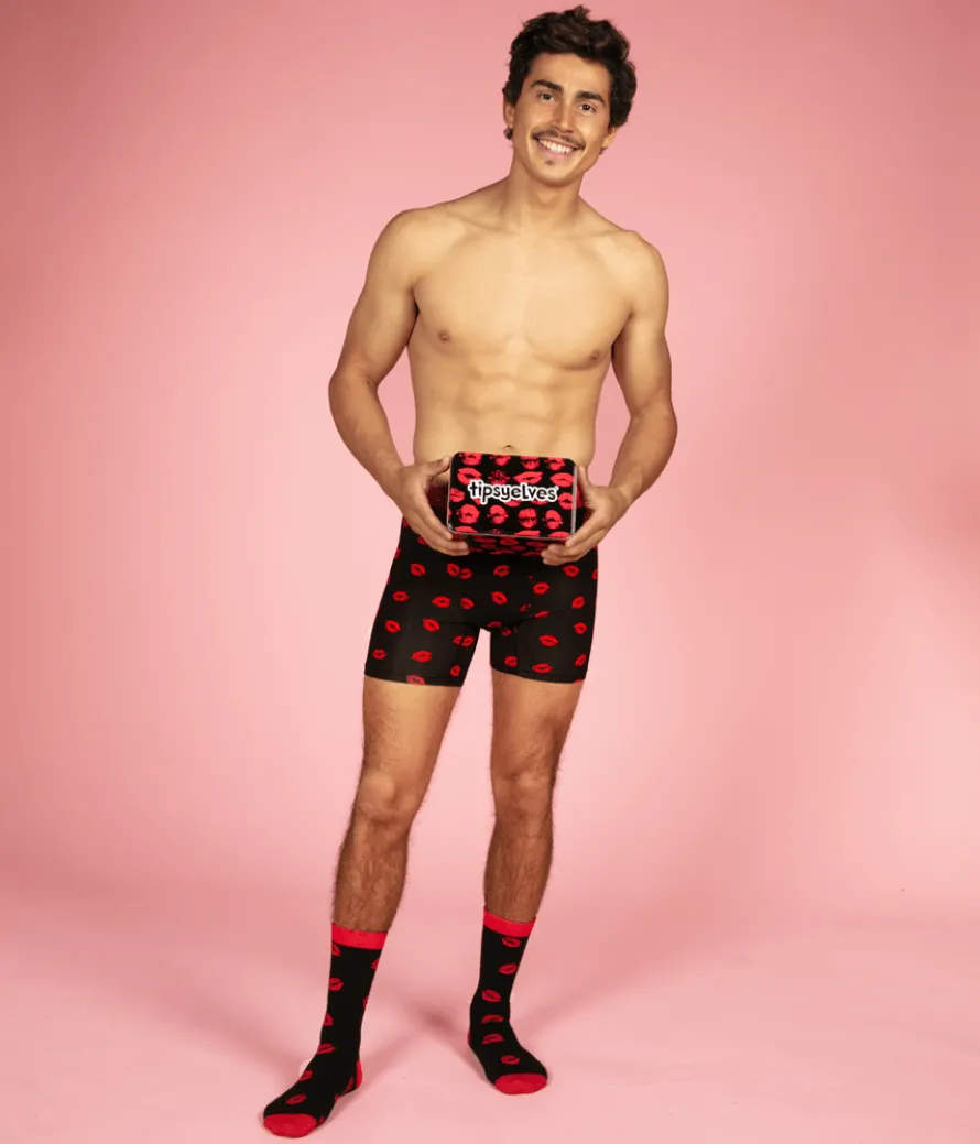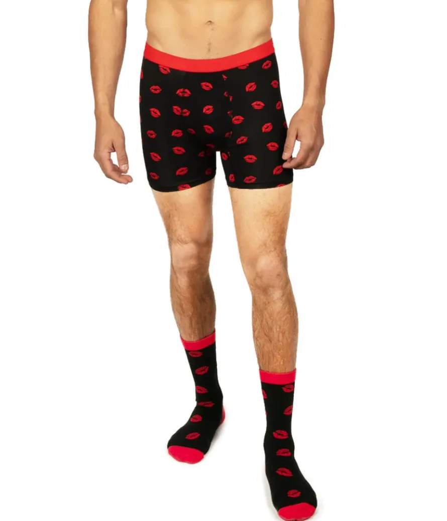 When they ask, “Under where?!?!” the answer will be pretty apparent with our studly Men’s Kiss Attack Boxers & Socks Gift Set. Adorned with hearts, this limited-edition duo will make him feel the love in all the right places. Made to be as comfy as it is sexy, this set of soft boxers and socks covers all the bases from their feel-goods to their feet-if you’re into that kind of thing. So give your special guy a gift from the heart and snag this set that is the total package, made to hold one.
