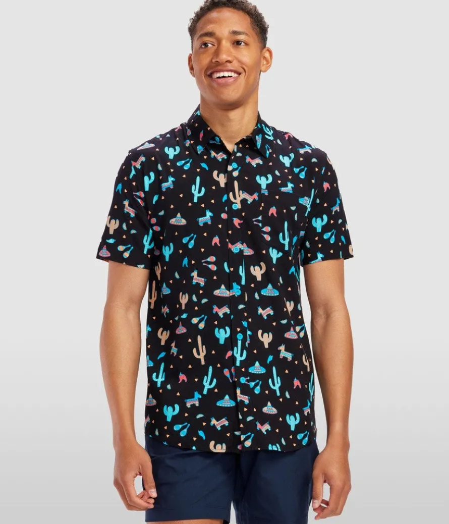 Did somebody say fiesta? As much as we love shriveling up like an old boot in the sun, summer nights are even better. After-hour drinking, midnight skinny dipping there’s a reason those kids sang about summer nights. This summer, embrace the Mexican fiesta feel with our Men’s Midnight Fiesta Hawaiian Shirt. It’ll be the best thing you ever threw off before you ran into the sea.