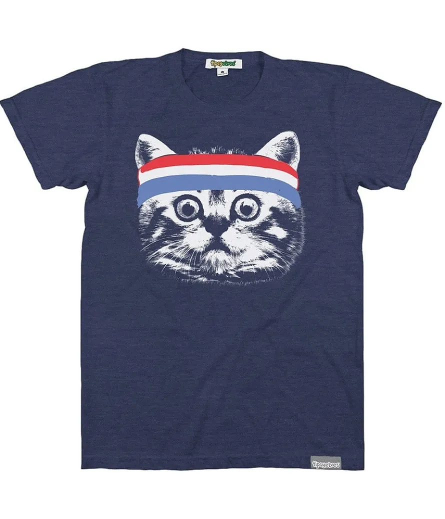 Cats don’t have time to stop being awesome long enough to pose for T-shirt designs, so we had to snap a candid shot of the awesome little guy as he was leaving the gym after his spin class. Check out that headband! Ain’t no sweat going to slow down this fabulous feline.