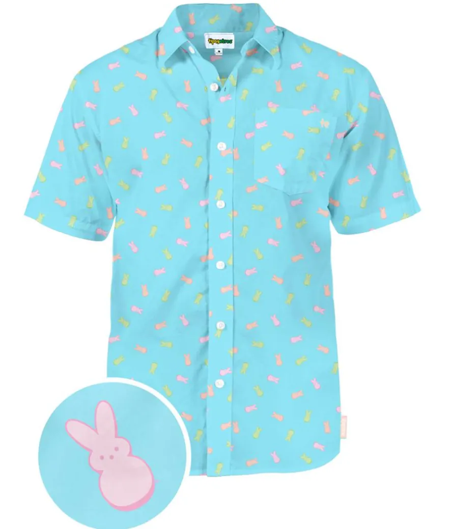 There’s only one way we want the function when we walk in. Hoppin’. If you aren’t familiar, it’s a full of energy function — and what’s a party without the buzz? The mass amounts of PEEPS® help, of course: embody the sugar rush of the Easter candy in the Men’s PEEPS® It’s Hoppin’ Button Down Shirt.