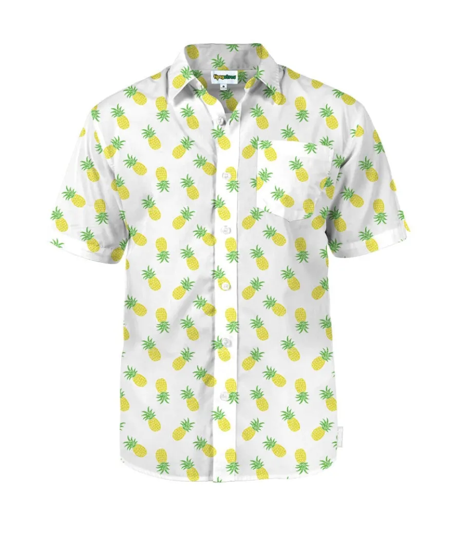 Feeling a little prickly heat this summer, gentlemen? Embrace the prickles and add a little of your own juice with this Men’s Pineapple Parade Hawaiian Shirt. We’re paying homage to the number one cocktail ingredient for the summer – pineapple. It’s so damn tropical, you’ll feel tipsy just looking at it.