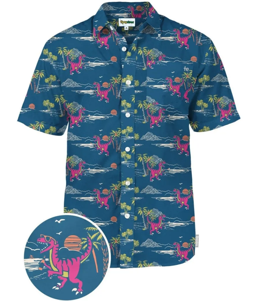 We just found out that our zodiac sign is the party raptor. It’s true. In fact, our horoscope said that wicked beach parties with brews, sunnies, and sandy underwear were in our future. It all came true when we saw the Men’s Prehistoric Party Hawaiian shirt. Forget the flowers – we’re raging with raptors on this sick short-sleeve summer button-down. While this short-sleever would technically be a long-sleeve to a raptor (trigger warning for people with short arms), we can see a lot of compliments coming your way, along with a lot of flip-cup victories in your future.