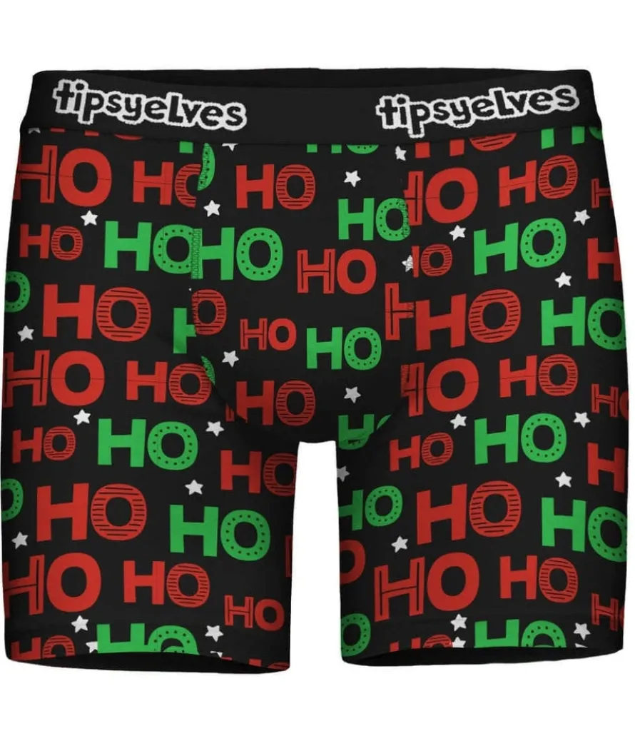 What first comes to mind when you hear the word “Ho?” It really depends on how many times you hear it repeated. Stay with us on this one. If you hear it by itself, you hopefully only think of the helpful garden tool. (Yeah, right.) If you hear it twice, you might think of the tasty chocolate snack. And if you hear it three times, you surely conjure images of the jolly man in the red suit. These boxer briefs up the ante by having it repeated more times than we can count, meaning they’ll have you positively swimming in Christmas cheer.