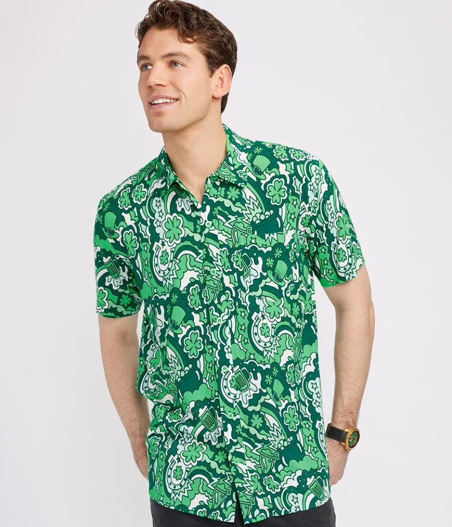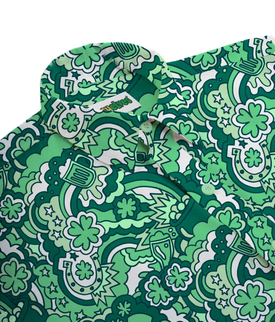 We don’t know about you, but we’re psyched for St. Patrick’s Day. So psyched, in fact, we decided to make it psychedelic in the Men’s Retro St. Paddy’s Button Down Shirt. We’re blending the beloved colors and clovers of the beer lovers together to create a look reminiscent of the way St. Patrick’s Day makes us feel – free, flowing and pretty freakin’ lucky.