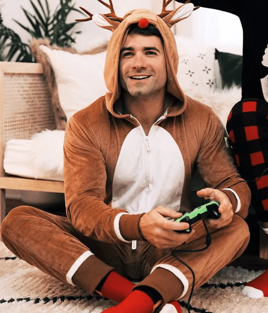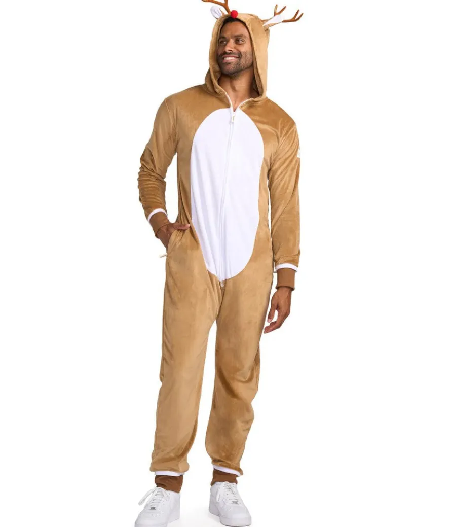 Are you Blitzen, dancin’ or prancin’ your way through the holidays? Why not try all three with this awesome Men’s Reindeer jumpsuit? This machine washable onesie will have you jumping in the front seat in no time, ready to steer that sleigh. And if you spend all night sleighin’, it’s loose and snuggly enough for hangovers, too.