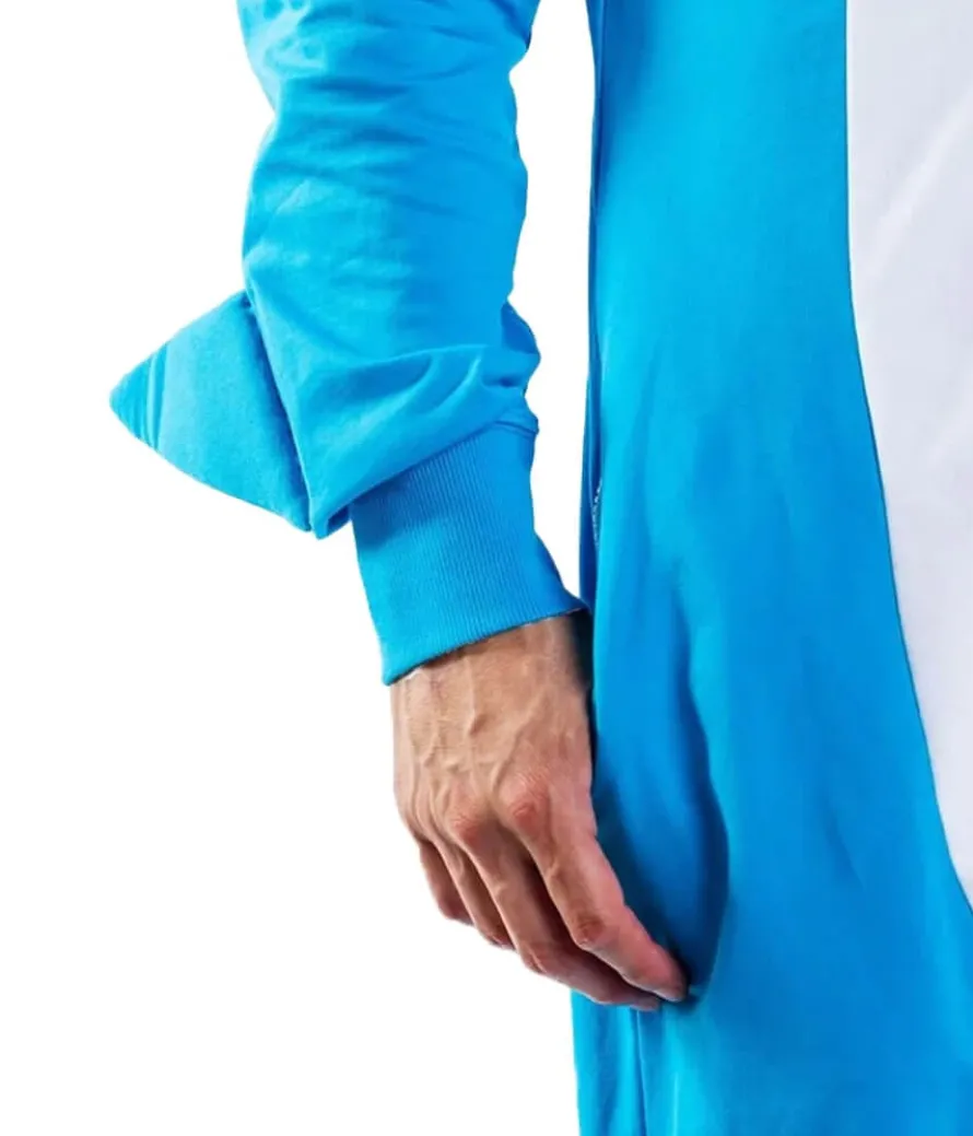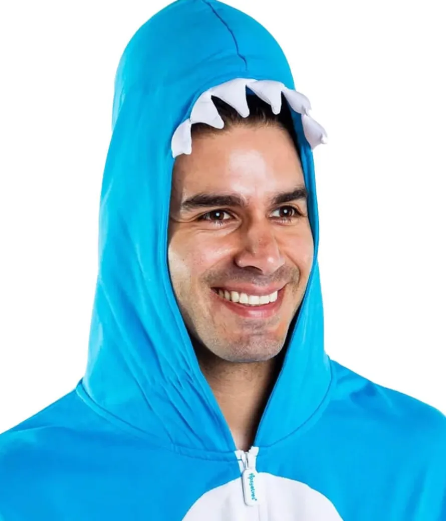 Want to see little children and grownups flee in terror as you glide through the streets in search of the most awesome Halloween happening? This shark costume will serve you well! There’s something oddly cheerful yet simultaneously terrifying about this sky-blue denizen of the deep. The little shark fins on the arms will help sweep everyone out of your way to the front of the line at the carnival. Be sure to smile wide. It adds to the chilling effect. And be happy that sharks can replace their teeth over and over. Because you’re going to be sharking down some candy apples this year and those suckers are hell on the old ivories.
