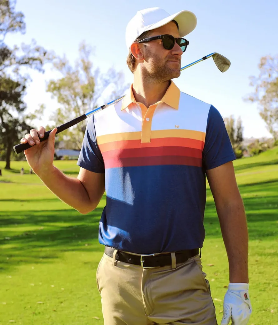 Break me off a piece of that, would ya? Not sure what the nasty side-eyes are all about, but we’re busy watching the sunset here. Bear a bit of the day’s disappearance in the Men’s Slice of Sunset Golf Polo – the colored ski is half the reason we go out to golf, after all. A good golf session is all about the ambiance, so wear it proudly.