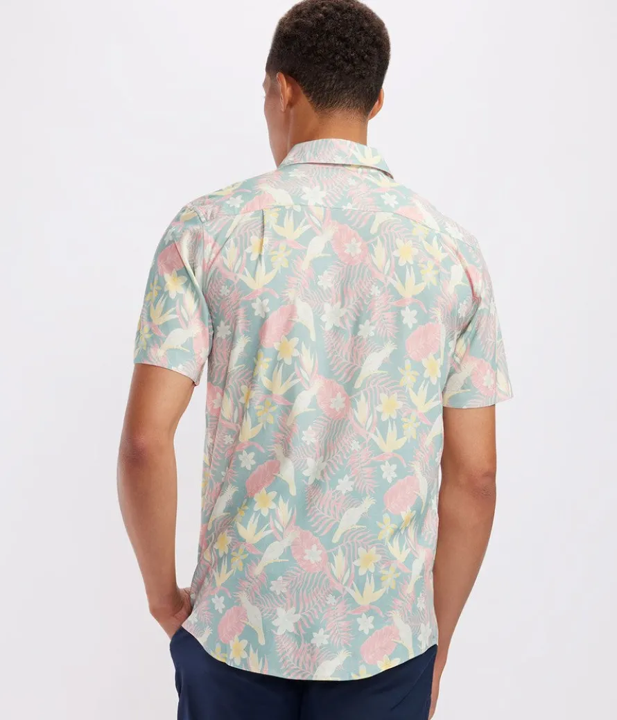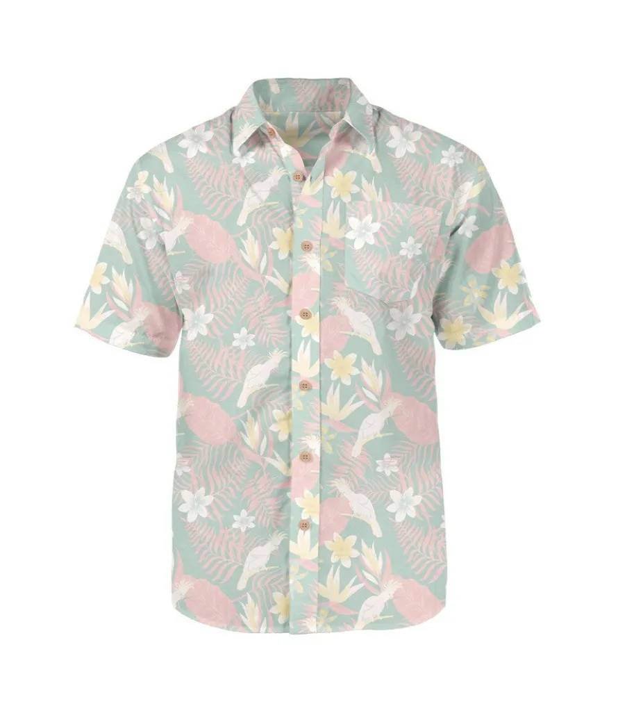 Gentlemen, looking to fly away this summer? Look no further than our Men’s Talk Birdie to Me Hawaiian Shirt. This eye-popping bad boy features tropical beasts perching on your finely-toned abs. And yes, cockatoo jokes are welcome.