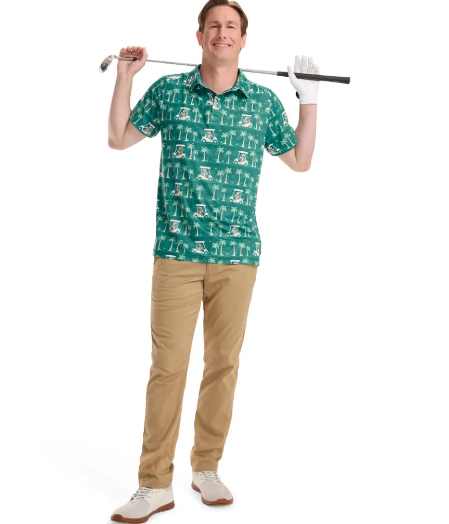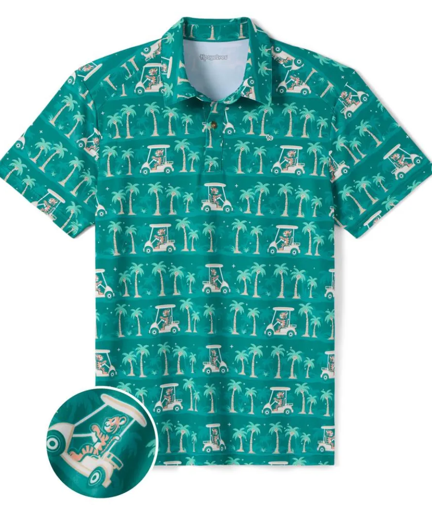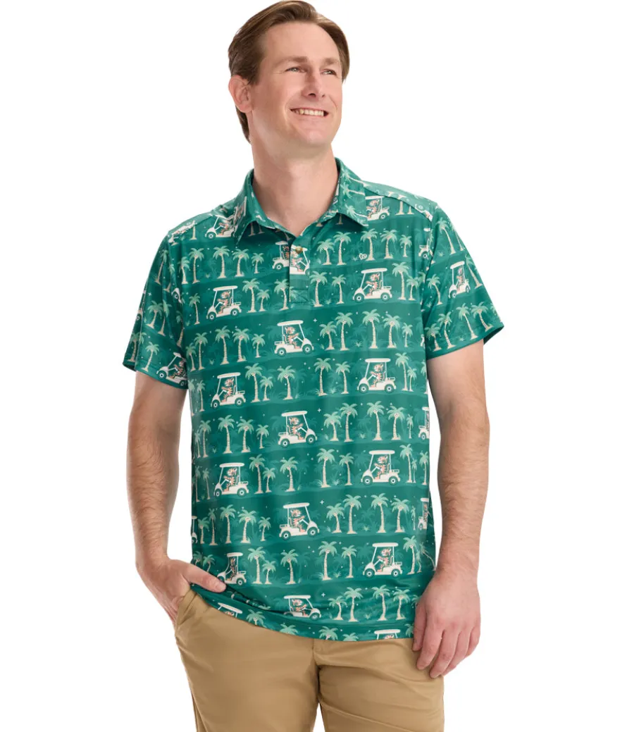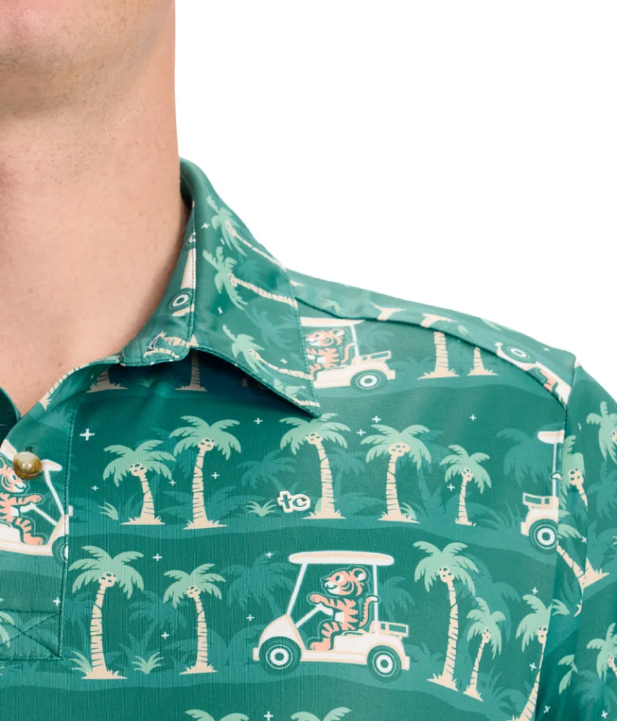 Take on the course in style with the Men’s Tiger in the Woods Golf Polo. With moisture-wicking fabric and wrinkle-resistant technology, you’ll stay comfortable and sharp all day long. Plus, the super soft material and playful tiger driving a golf cart design will have you looking and feeling your best on the green (or in the woods).