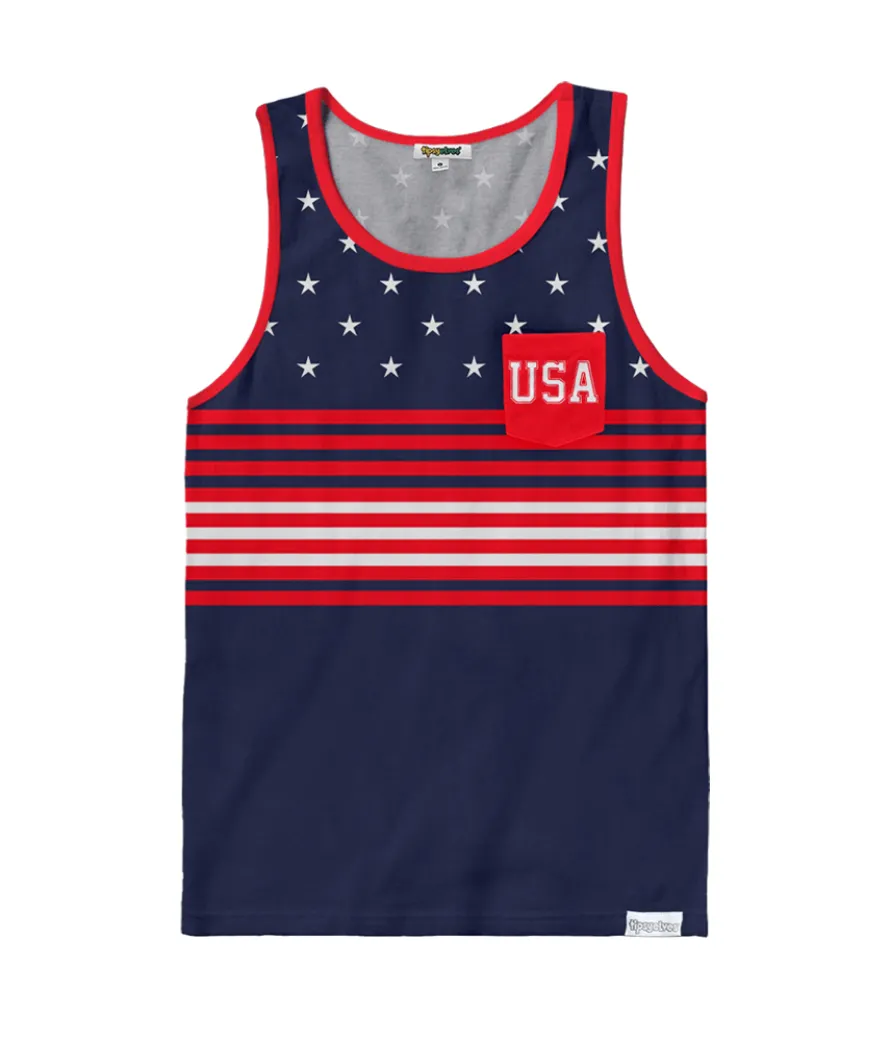 What are you up to today? Honestly, we’re planning on doing USA, all day. Show them all what you’re booked and busy with in the Men’s USA All Day Tank Top, featuring stars and stripes sealed in red, white and blue all about. Doing USA is now an appropriate excuse. Do not disturb.